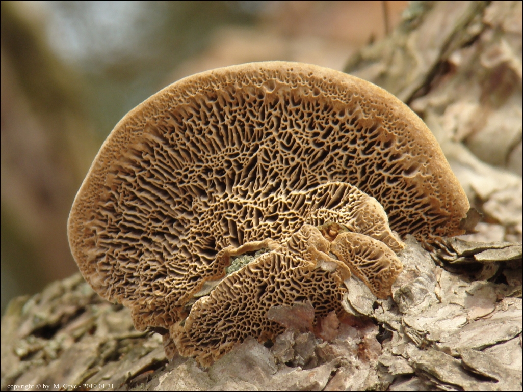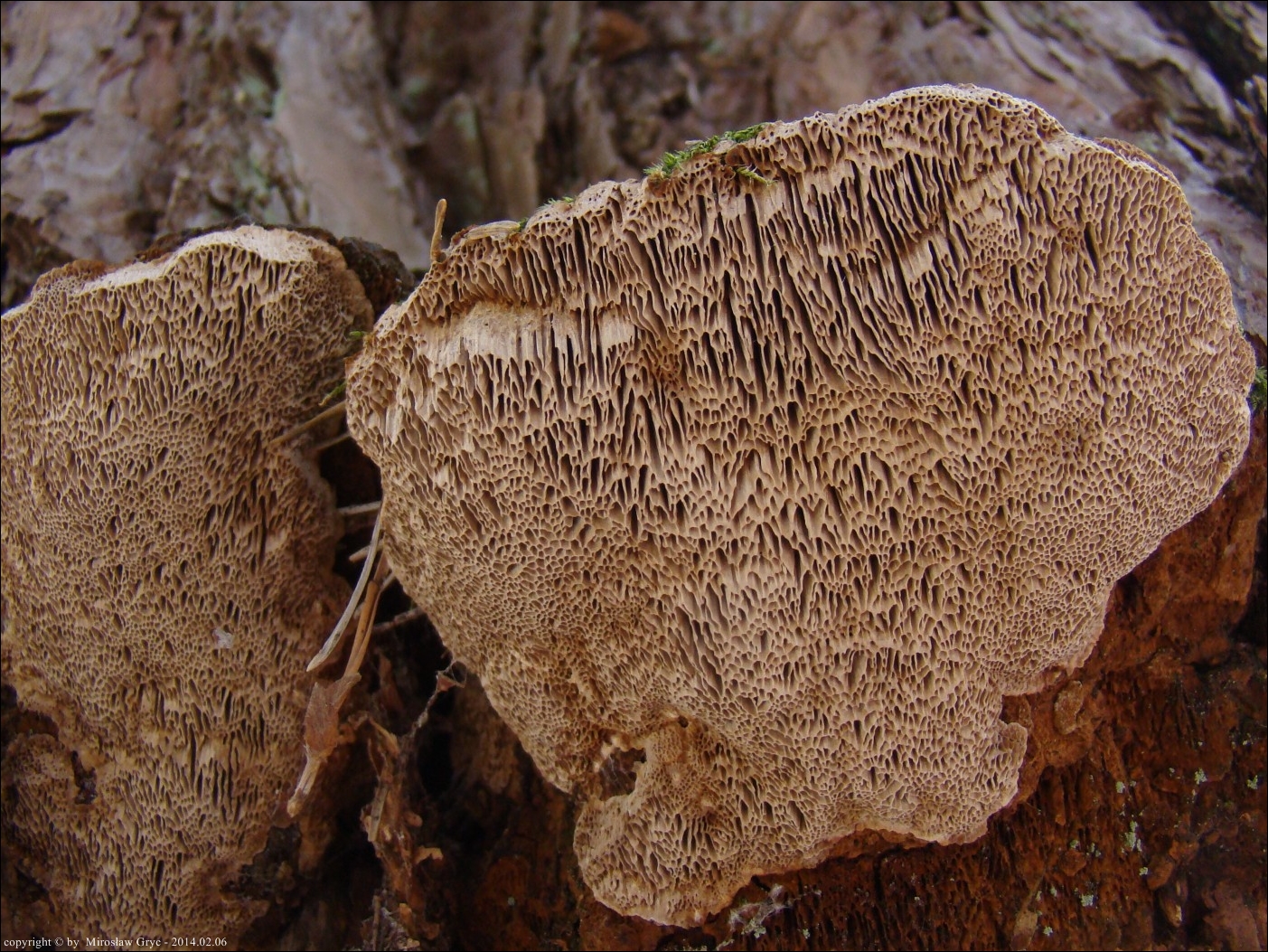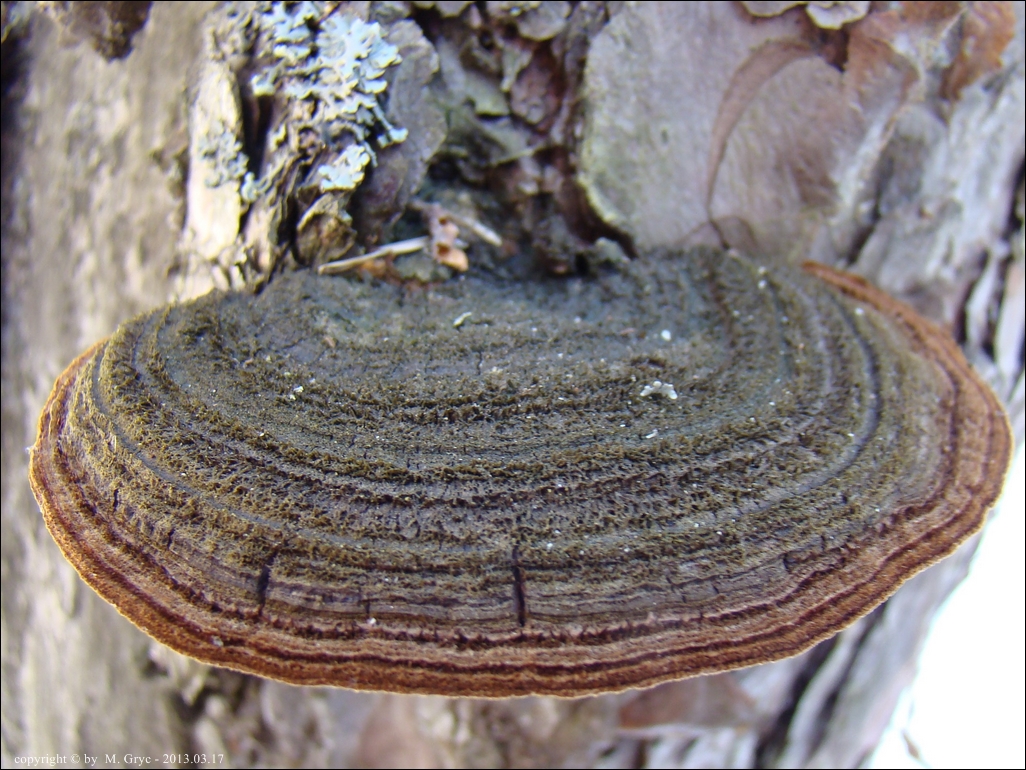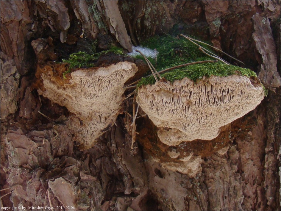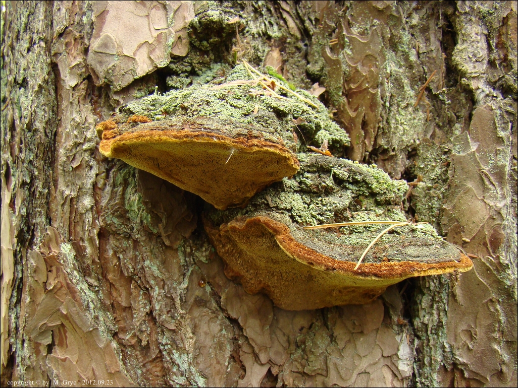 Substrat: Dwa owocniki na pniu sosny, na wysokości około 1,5 m.