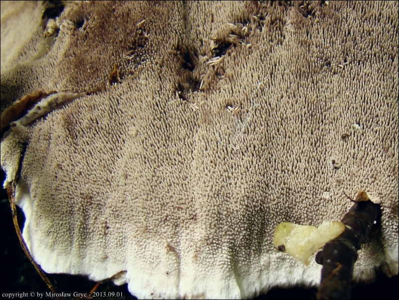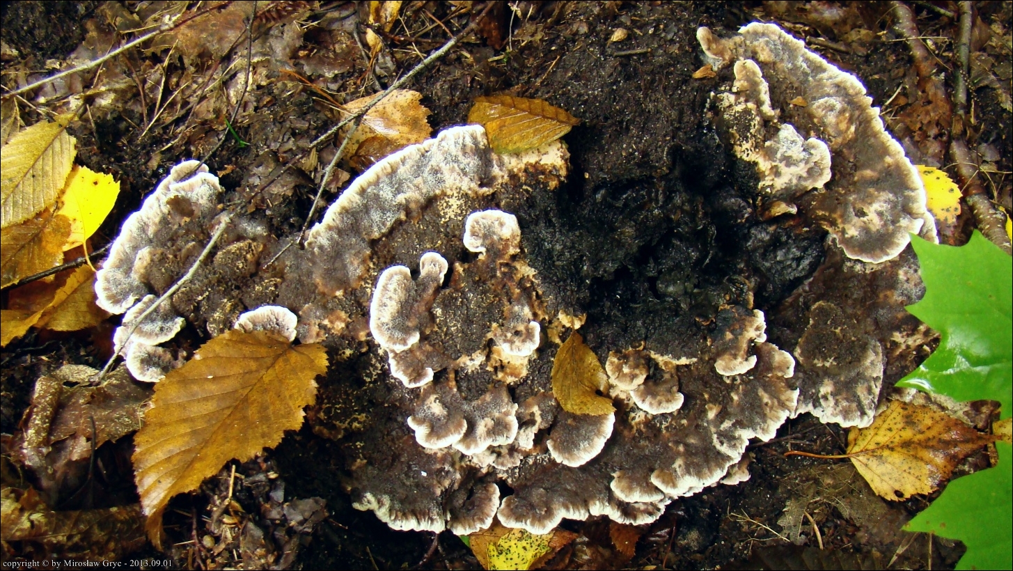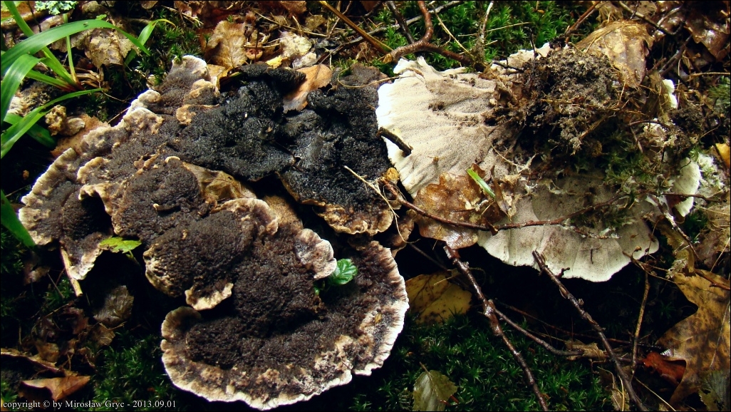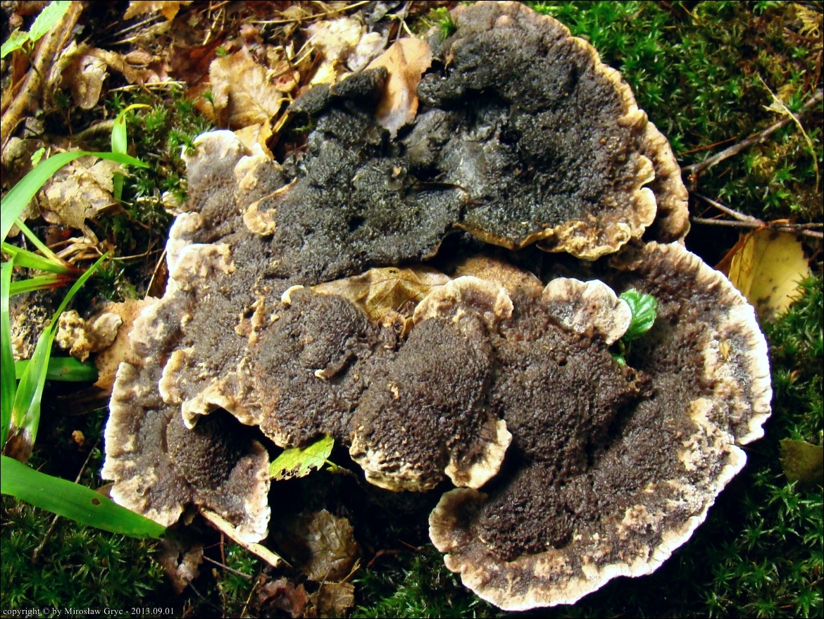 Sytuacja analogiczna jak w poprzednim przypadku, owocniki wyrastały w czarcim kręgu wraz z Hydnellum concrescens .
