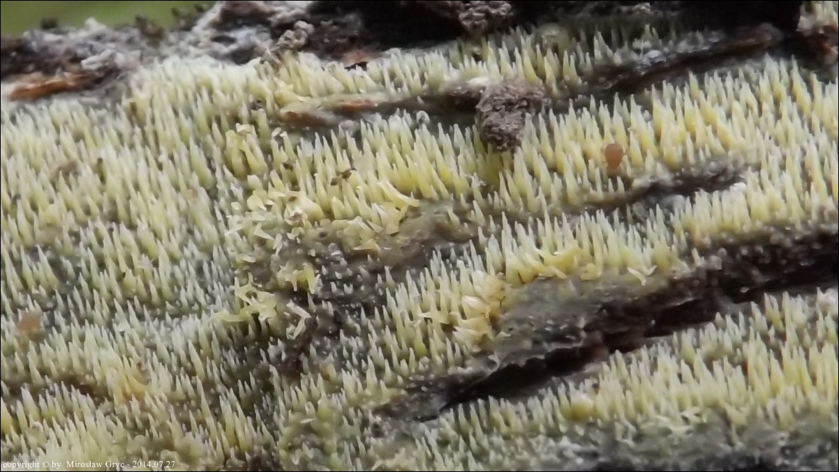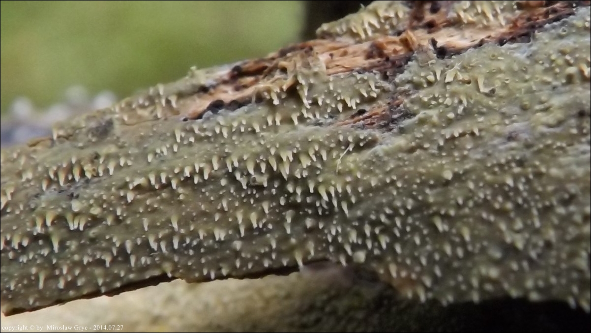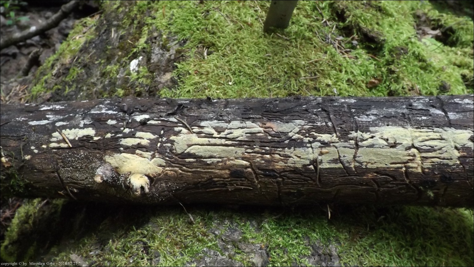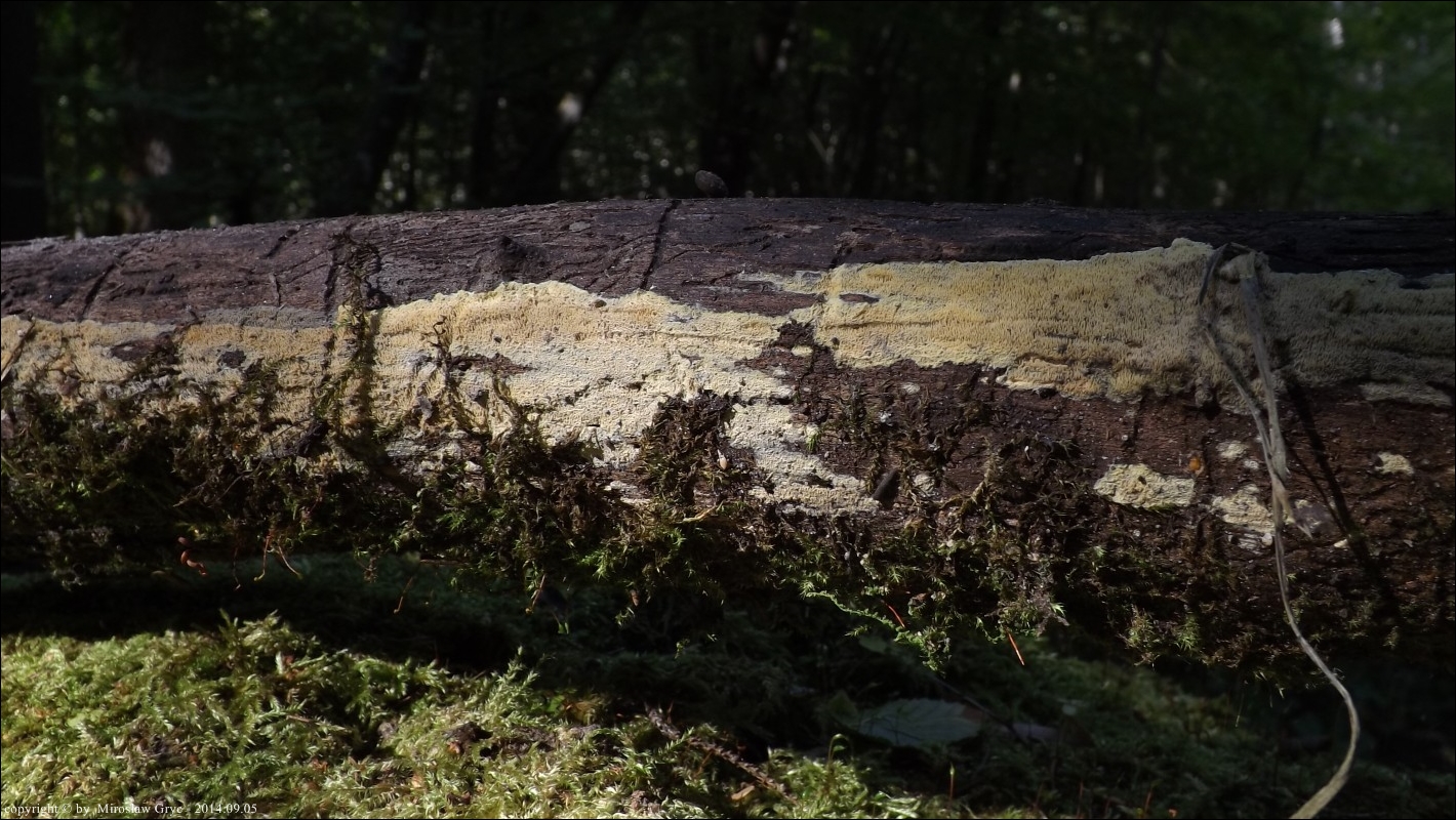 Substrat: Teren podmokły. Owocniki na dolnej stronie leżącego na mokrym gruncie (błocie) drąga liściastego.