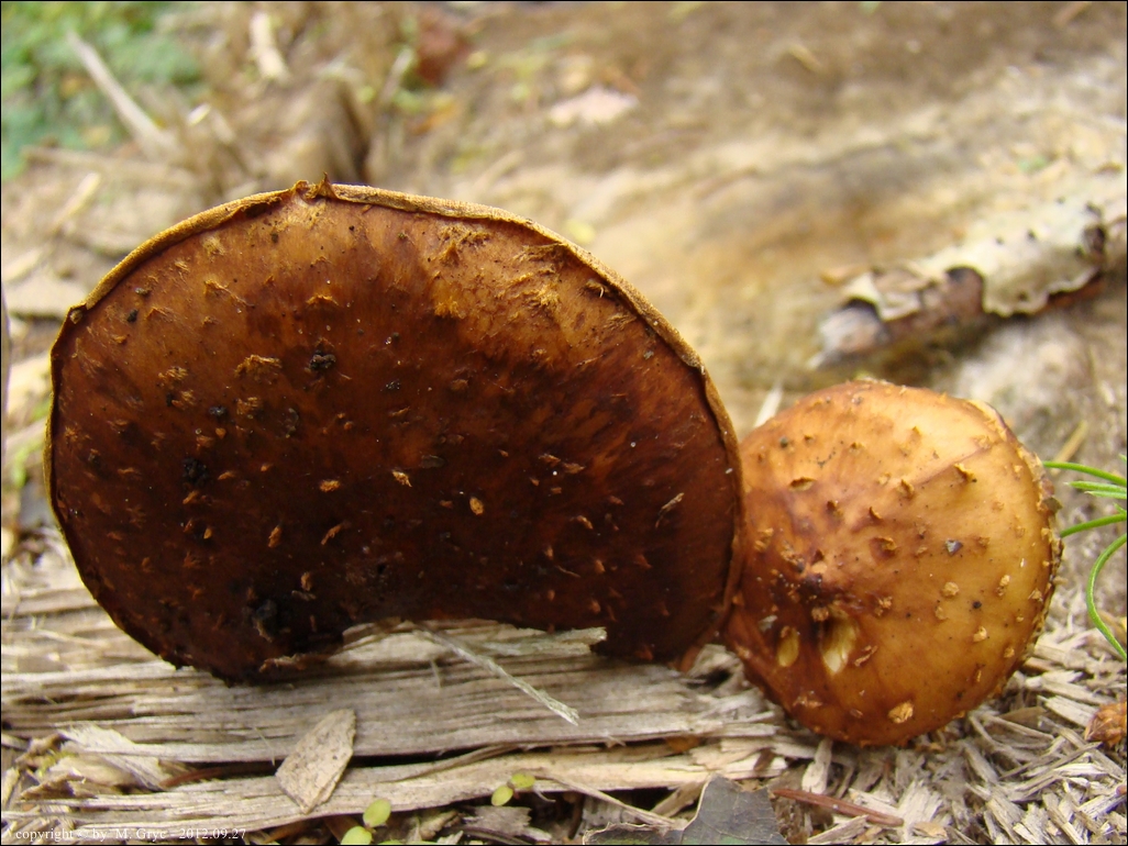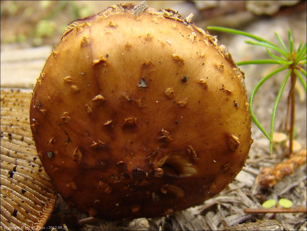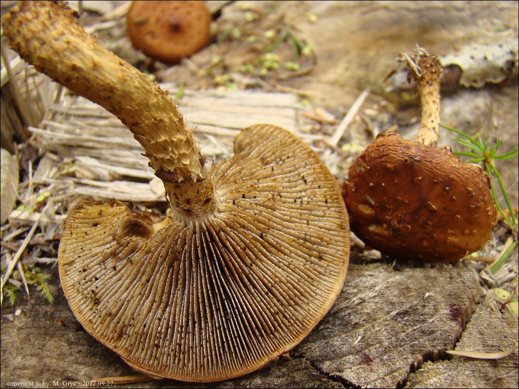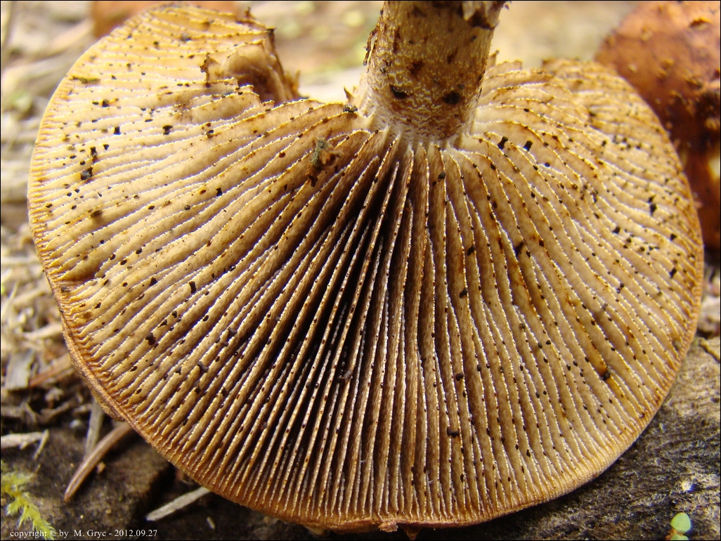 | 2014.07.24 | Śródpolne zadrzewienie, około 1.5 km na S od Ogrodniczek. | Jeden owocnik u podstawy topoli. Mikroskopował B. Gierczyk. Numer wątku na Bio-Forum: 33/6942.2.8. . Stanowisko zgłoszone do Krajowego Rejestru GREJ - ID: 295415. . |
