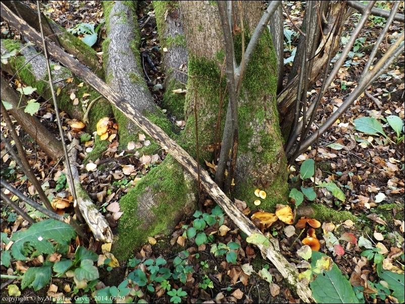 | 2013.09.24 (5 kolekcji) | Ogrodniczki, 1 km S. | Śródpolne zadrzewienie o zróżnicowanym charakterze; drewno olchy i topoli. Numer wątku na Bio-Forum: 6047.5.0. . Mikroskopował Bażej Gierczyk. |
