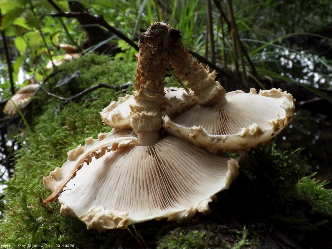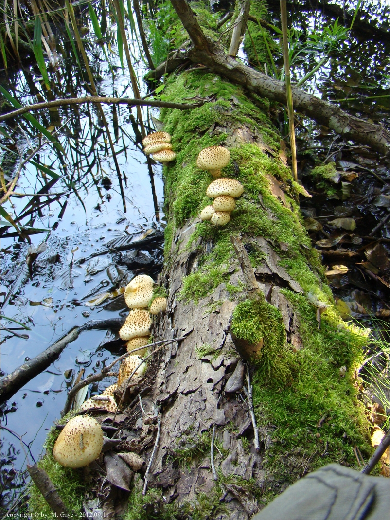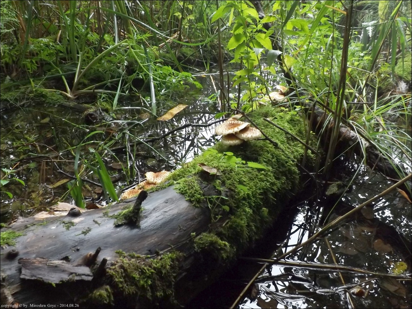 Substrat: Nadwodne zarośla; pień złamanej wierzby, częściowo zanurzony w wodzie.