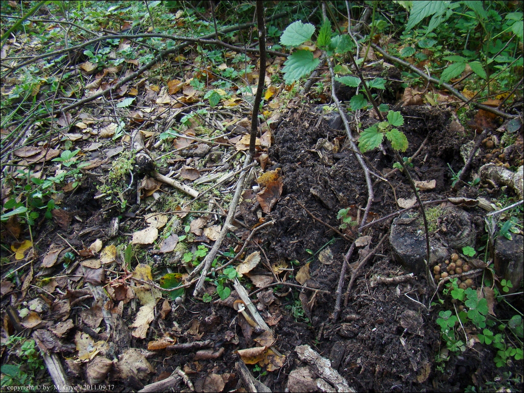 Ziemia, grubo usłana resztkami drewna. Stanowisko aktywne od kilku lat.