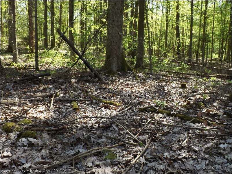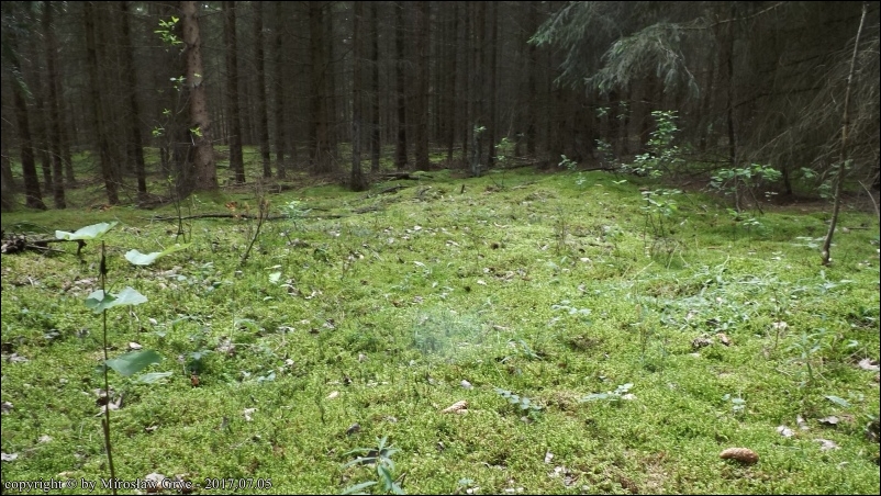 Substrat: Fragment lasu o starym drzewostanie mieszanym: grab, dąb, świerk. Kilka owocników na dwóch fragmentach drewna pochodzenia liściastego, wgniecionego częściowo w ziemię.