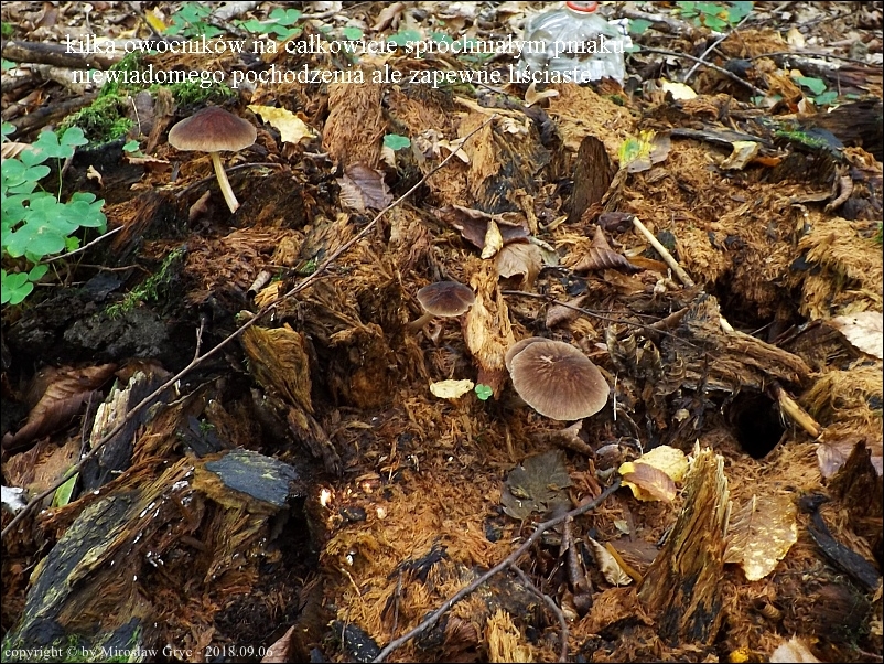 Substrat: KIlka owocników na próchnie powstałym z pniaka po ściętym drzewie.