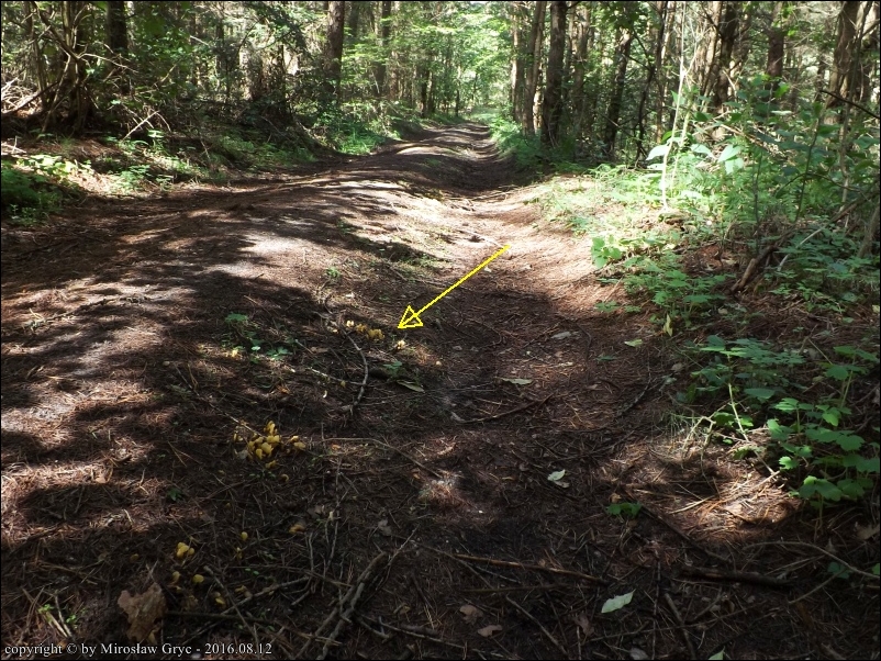 Substrat: Droga leśna dzieląca las modrzewiowy od sosnowego; ziemia.