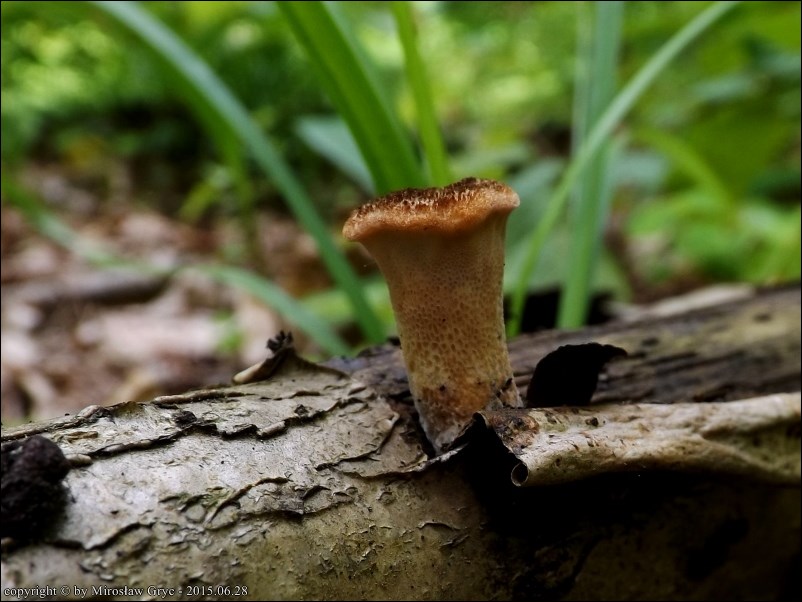 | ID: 210685 z dn. 2012.06.03. (ATPOL: GC-02) | 6 km na NE od Supraśla (okolice Czołnowa). | Stary puszczański las mieszany, na złamanej i zawieszonej nad ziemią gałęzi leszczyny, jeden owocnik. Stanowisko ujęte w pracy zespołowej: Grzyby Puszczy Knyszyńskiej - Anna Kujawa, Błażej Gierczyk, Mirosław Gryc, Marek Wołkowycki - 2019 rok. |