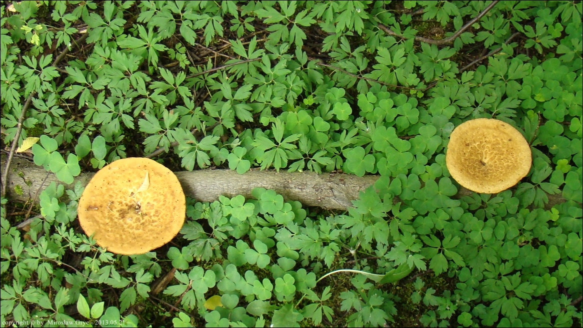 | ID: 265349 z dn. 2015.06.28. (ATPOL: GC-01) | Las iglasty z małą domieszką liściastych, w pobliżu Ogrodniczek (około 1km E). | Jeden owocnik na wgniecionej w ściólkę gałęzi brzozy. Owocnik mikroskopowany przez Alę Mikołajczyk, wyniki w wątku na Bio-Forum nr. 33/765375 . Stanowisko ujęte w pracy zespołowej: Grzyby Puszczy Knyszyńskiej - Anna Kujawa, Błażej Gierczyk, Mirosław Gryc, Marek Wołkowycki - 2019 rok. |