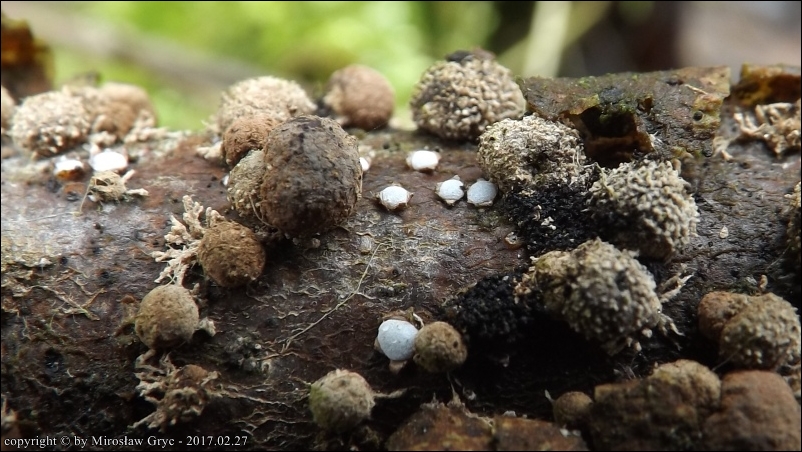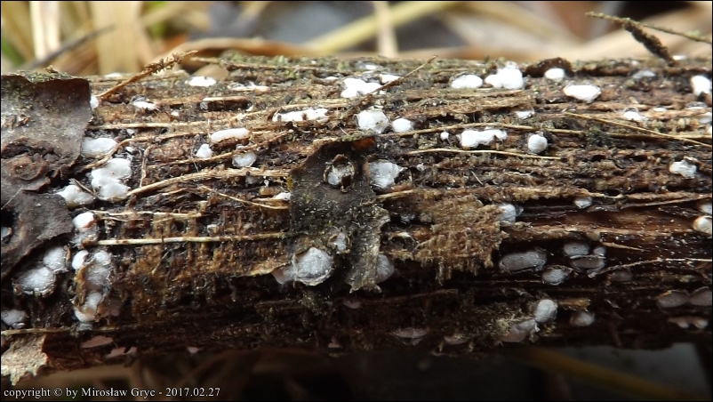Substrat: Owocniki na leżących na ziemi gałęziach topoli.