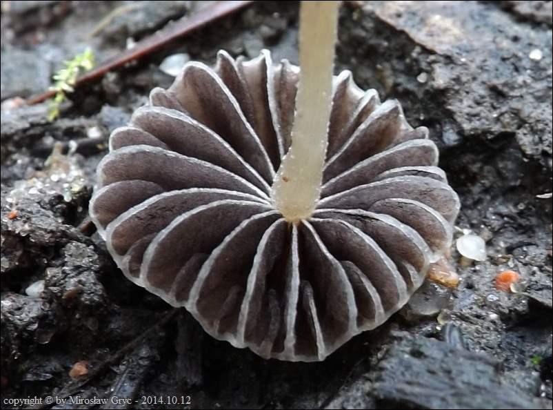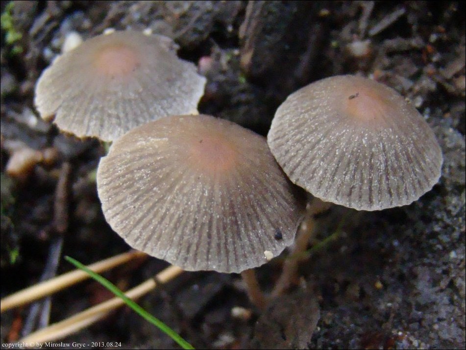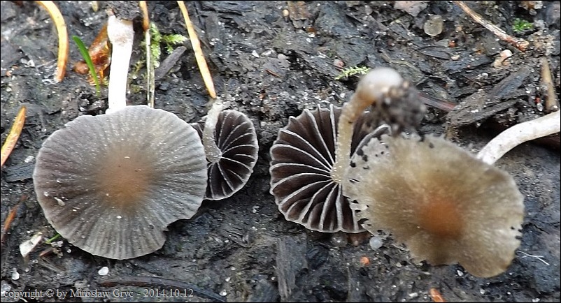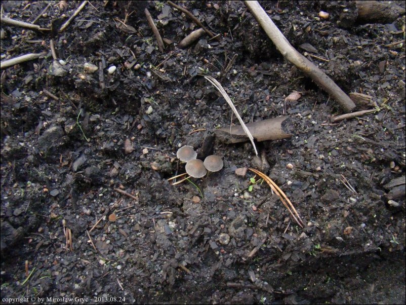 Trzy owocniki na błotnistej ziemi zmieszanej z dużą ilością resztek drewna. Gatunek określony mikroskopowo przez B. Gierczyka.