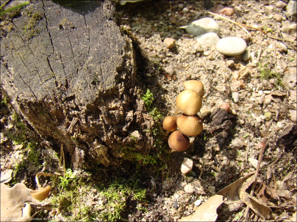 Lokalizacja: Owocniki wyrastały na pniaku niewiadomego pochodzenia, przy drodze leśnej, biegnącej z Ogrodniczek w kierunku leśniczówki Krasny Las.