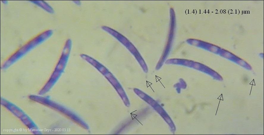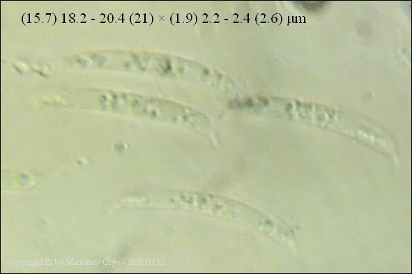 Pseudolachnea hispidula 10.5–16(–17) x 2–2.5(–3) µm