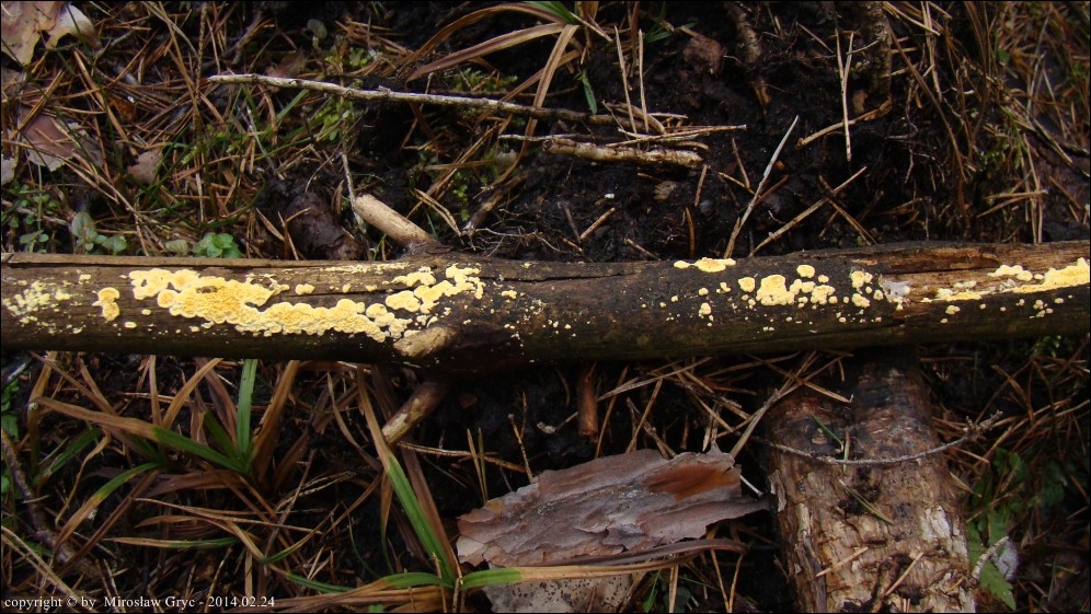 Lokalizacja: Owocniki na kawałku sosnowej gałęzi.