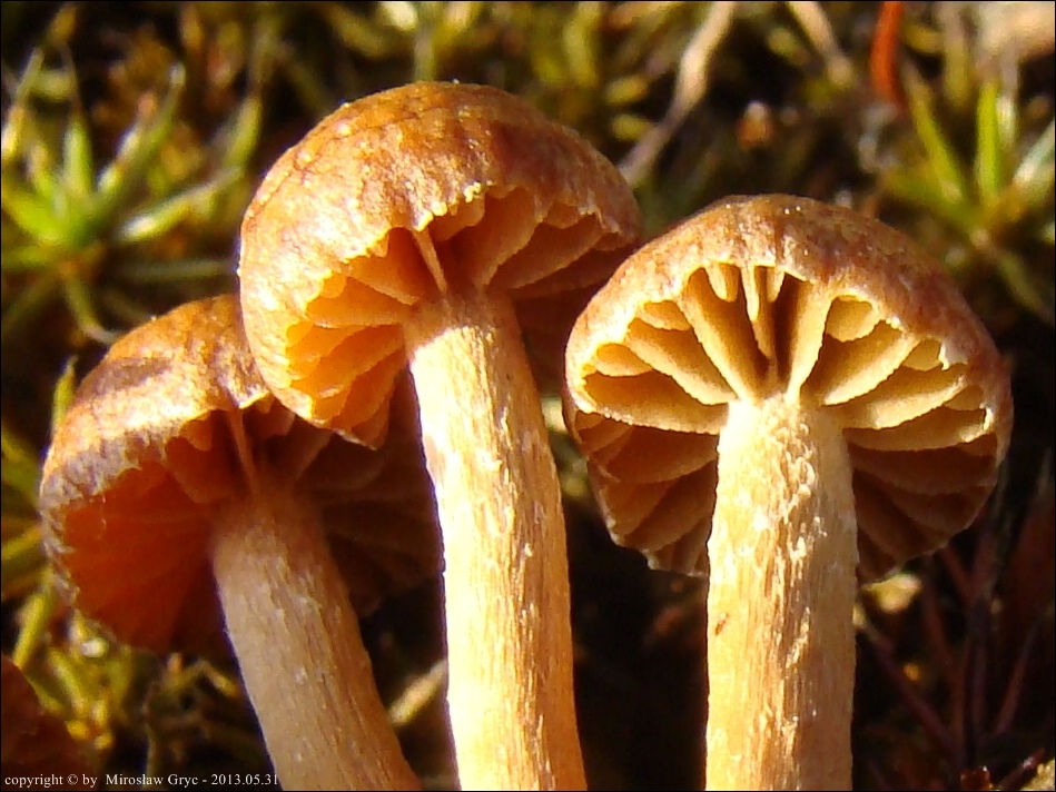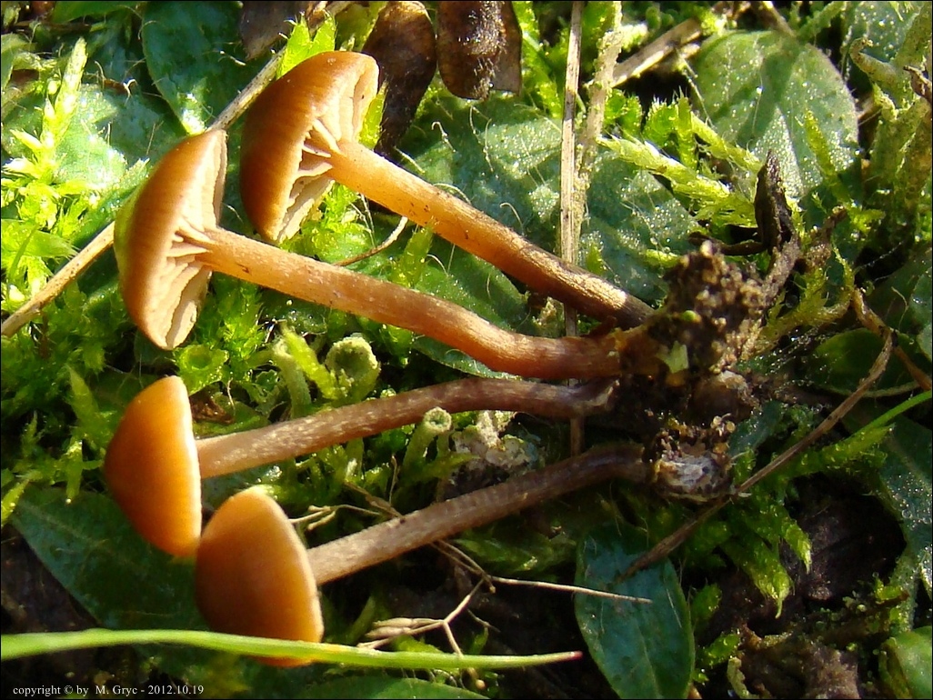 | 2013.11.24 | Około 1 km na SE od Ciasnego. | Piaszczyste nieużytki rolne, częściowo zalesione (świerk, sosna, rzadziej liściaste). Dwie grupki owocników, na ziemi porośnietej mchem. Nr. wątku na Bio-Forum: 33/6262.4.3. . Mikroskopował B. Gierczyk. Stanowisko zgłoszone do Krajowego Rejestru GREJ ID: 257497 . Stanowisko ujęte w pracy zespołowej: Grzyby Puszczy Knyszyńskiej - Anna Kujawa, Błażej Gierczyk, Mirosław Gryc, Marek Wołkowycki - 2019 rok. |