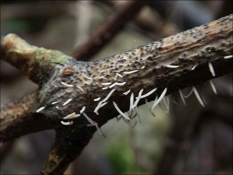 Substrat: Nielegalne wysypisko śmieci, częściowo zrekultywowane; cienkie gałązki jesionu.