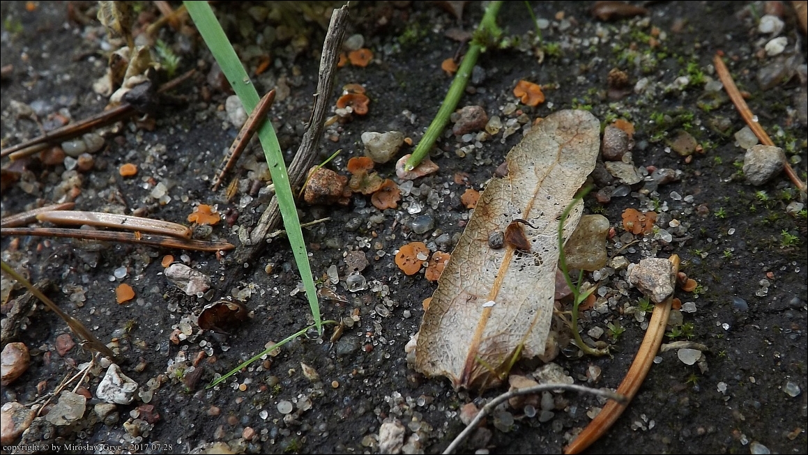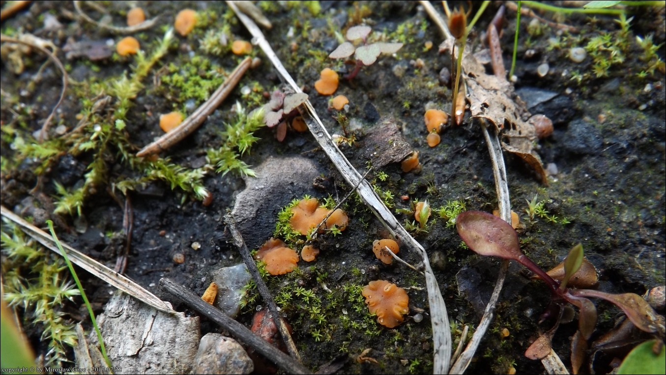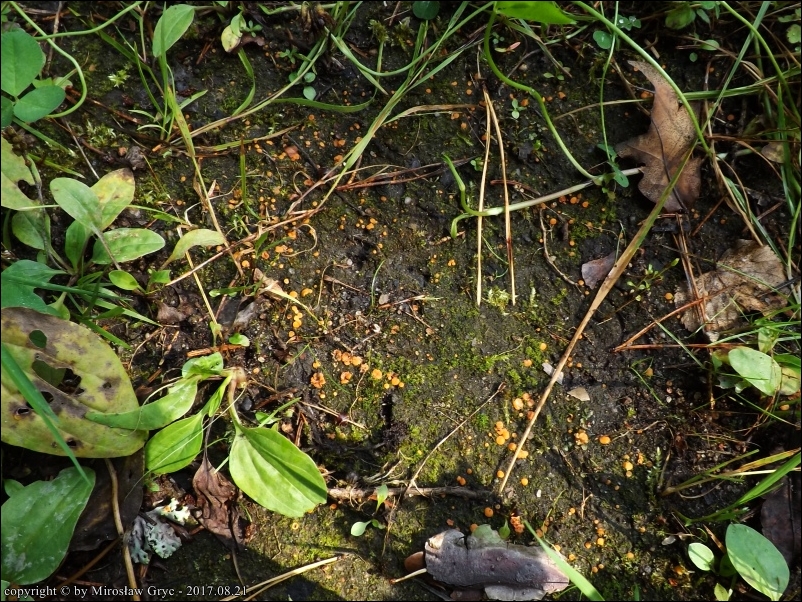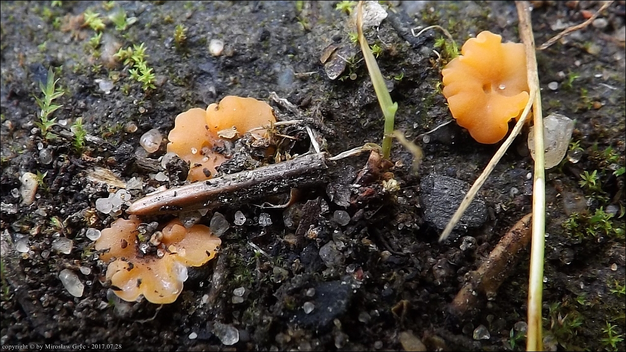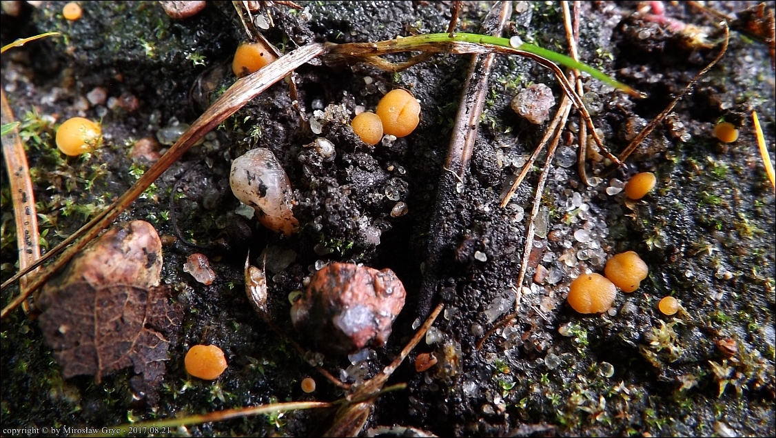Substrat: Kilkadziesiąt owocników na ziemi pozbawionej wyższej roślinności, miejsce dawniej palonego ogniska.