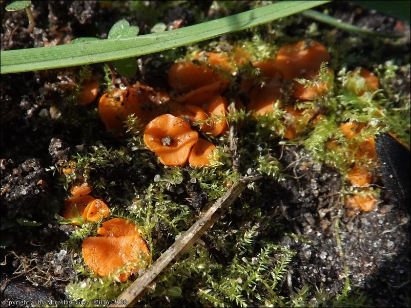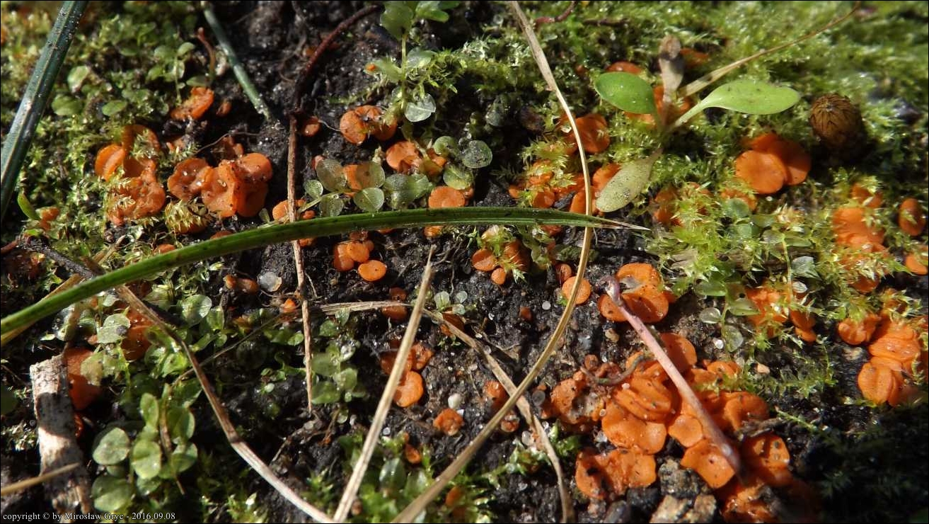 Substrat: Kilkadziesiąt owocników na ziemi pozbawionej wyższej roślinności, miejsce dawniej palonego ogniska.