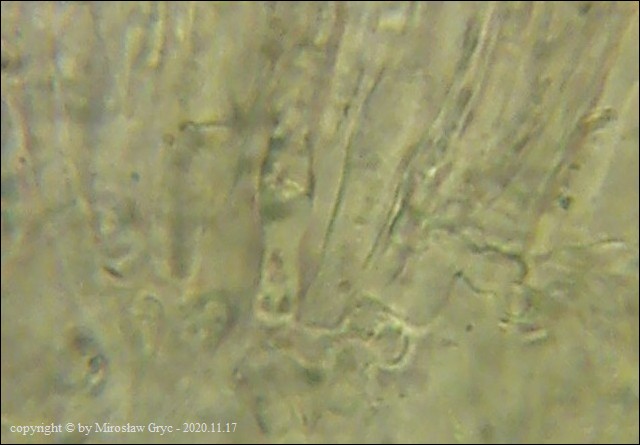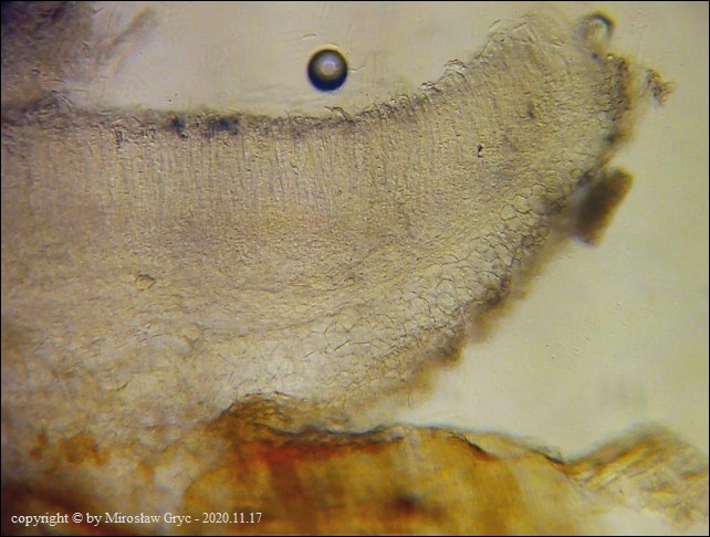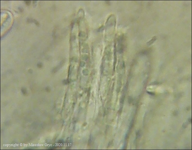 Substrat: Owocniki na martwych pędach malin. Kolekcja sciśle powiązana z Helicogonium trabinelloides oraz innym nieznanym gatunkiem pasożyta!