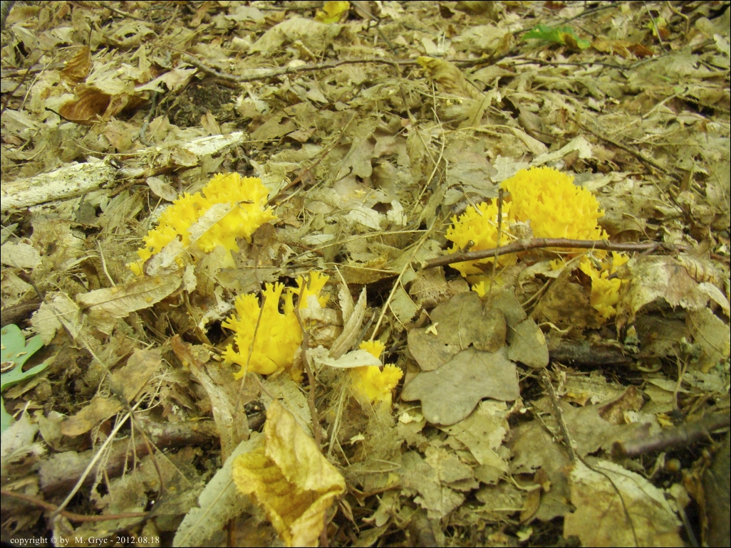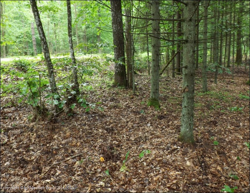 Substrat: (grab, dąb, w tym miejscu częsta brzoza, sporadycznie świerk). Kilka owocników , w różnym wieku, rosnączych na przestrzeni około 10 m.