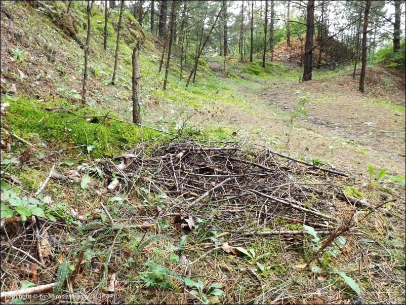 Substrat: Wyrobisko pożwirowe, zbocze z rzadka porośnięte sosną; ziemia.