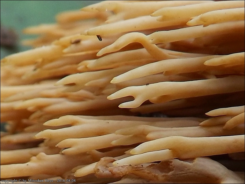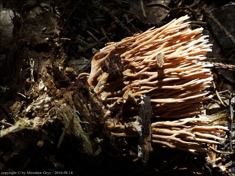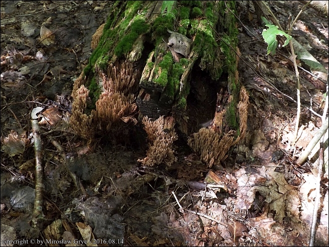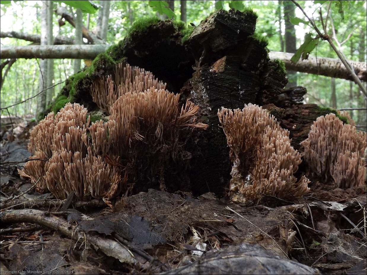 Substrat: Owocniki masowo wokół leżącego na ziemi zbutwiałego pnia liściastego.