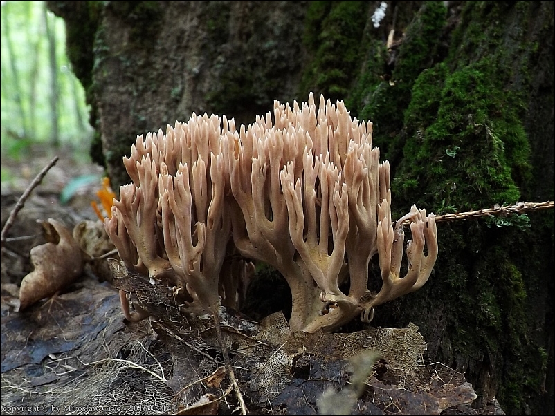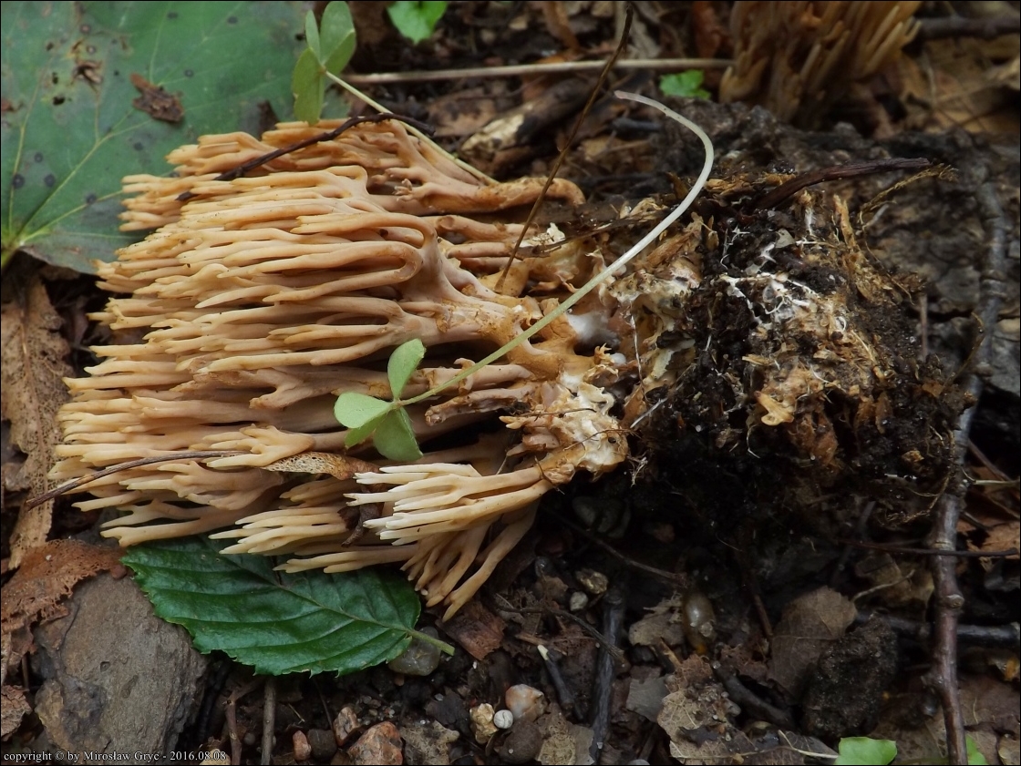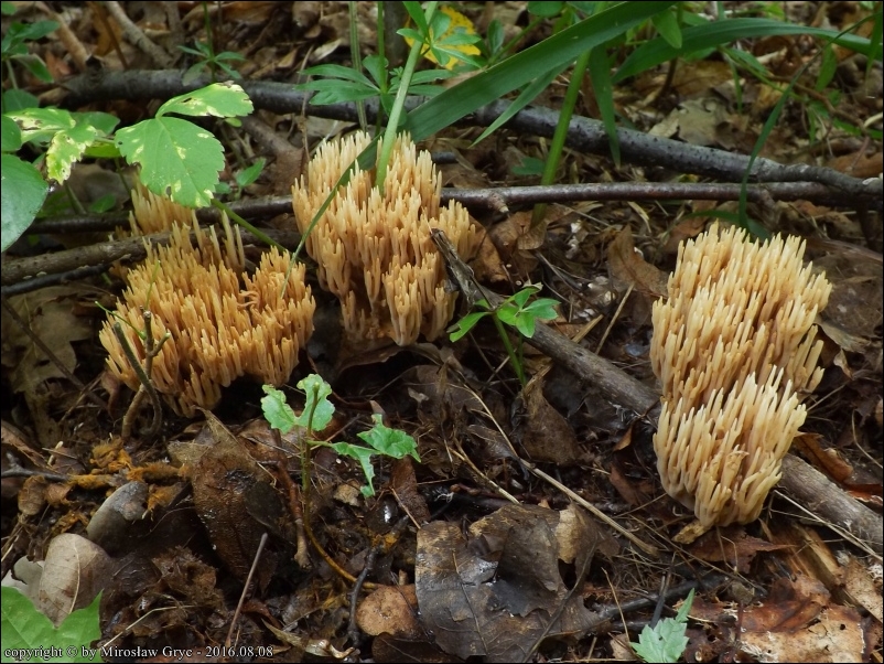 Substrat: Grupka owocników na ściółce w lesie liściastym.