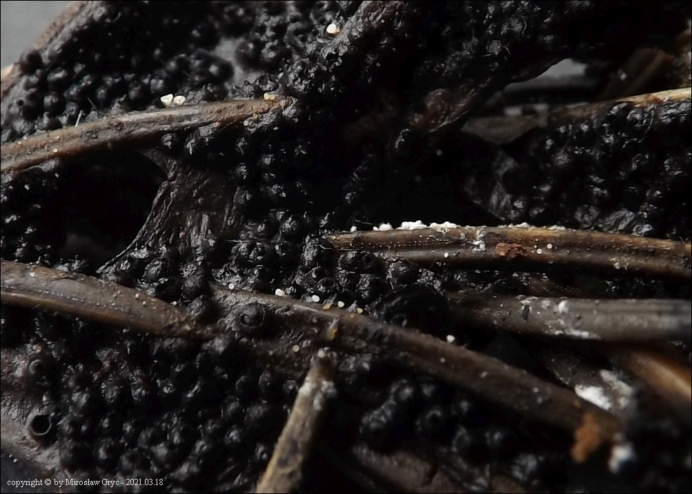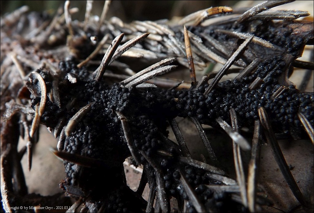 Substrat: Las mieszany; gałęzie i igliwie powalonego świerka (Picea abies) .