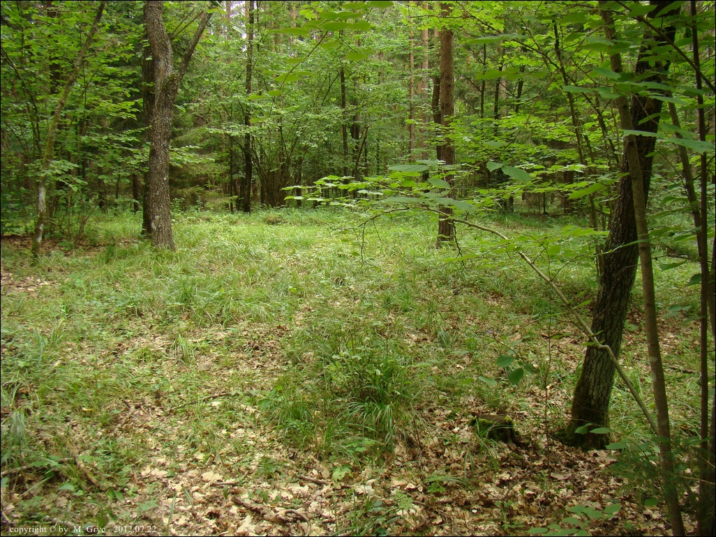 Lokalizacja: Puszcza Knyszyńska, okolice Czółnowa, rzadkie zadrzewienie liściate (grab, dąb, i inne), teren częściowo porośnięty trawami.