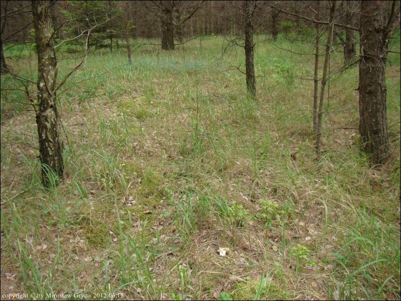 Substrat: Podłoże piaszczysto-żwirowe, w pobliżu sosny i brzozy.
