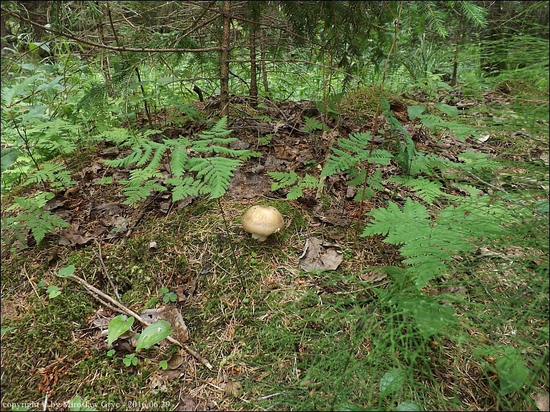 Substrat: Jeden owocnik na wypiętrzeniu terenu powstałym po zbutwiałym pniaku, najprawdopodobniej świerka.