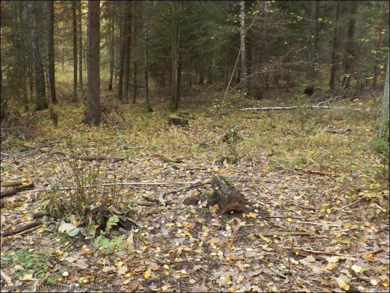 Substrat: Przydroże w lesie iglastym, w pobliżu młody dąb oraz kilka pniaków po wyciętych liściastych.