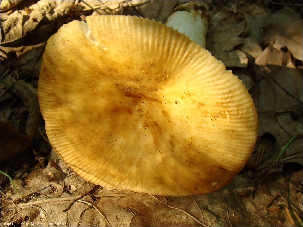 Strzępki skórki rozgałęzione, dość grube, pomiedzy którymi znajdują się również rozgałęzione włoski oraz nieliczne przewody mleczne.