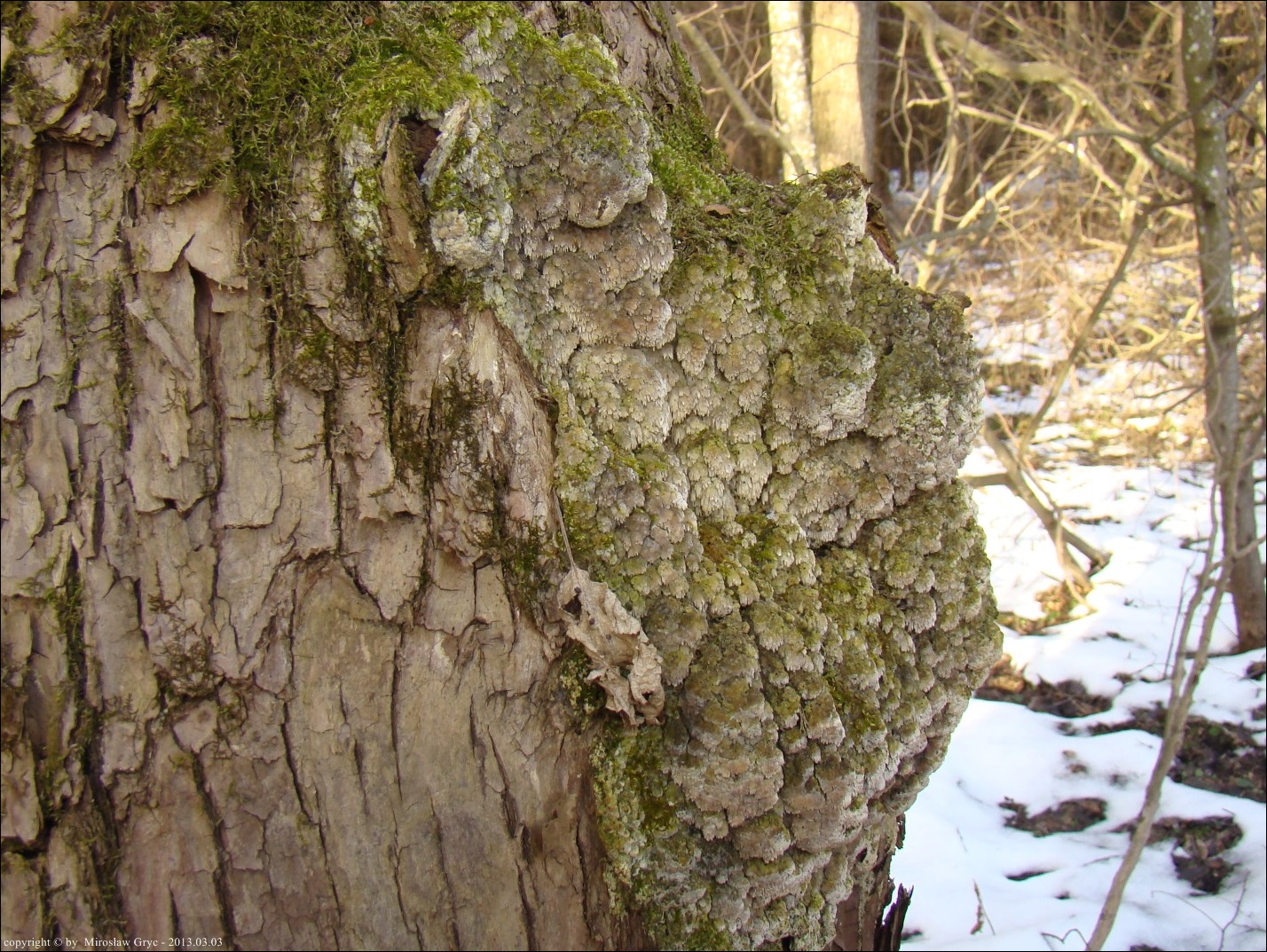 Lokalizacja: Obserwowany już od kilku lat dorodny owocnik, wyrastający na starej wierzbie w miejscu (prawdopodobnie) dawniej rosnącej gałęzi.