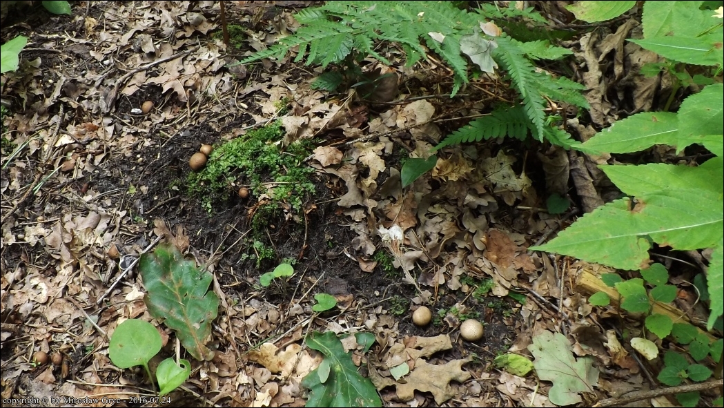 Substrat: Kilka owocników na ziemi, w lesie liściastym.