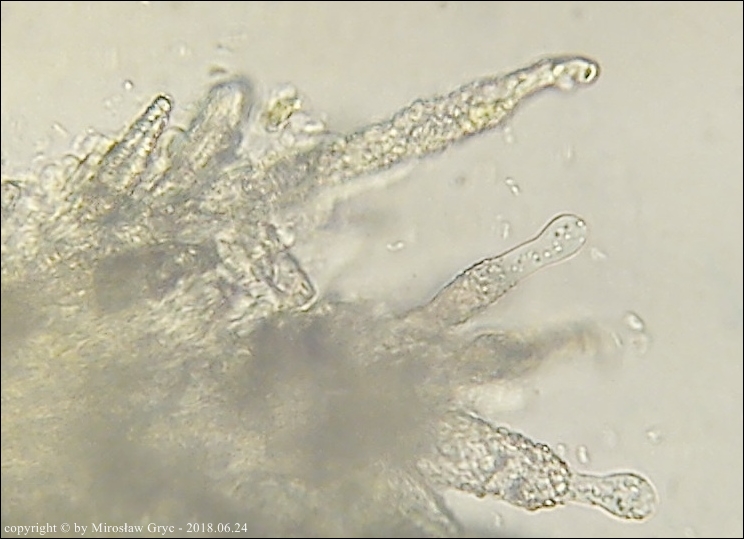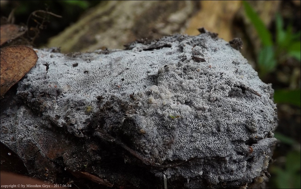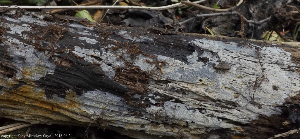 Substrat: Owocniki na leżącym na wilgotnej ziemi fragmencie drewna.