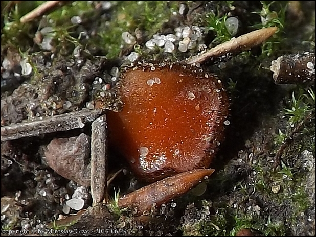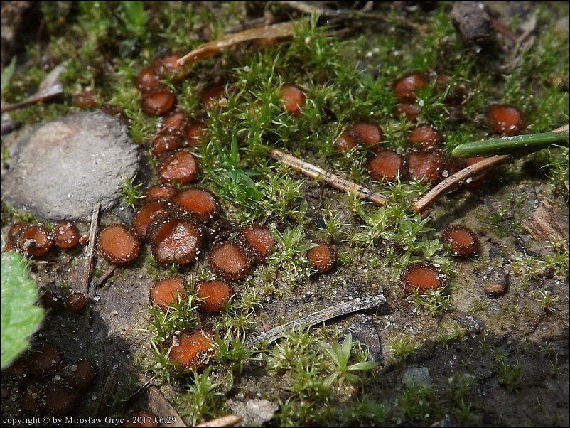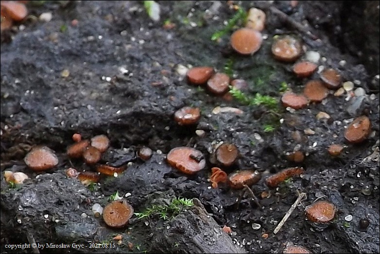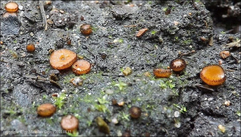 Substrat: Owocniki na ziemi błotnistej koleiny, pozostałej po pracach leśnych podczas wyciągania drewna.