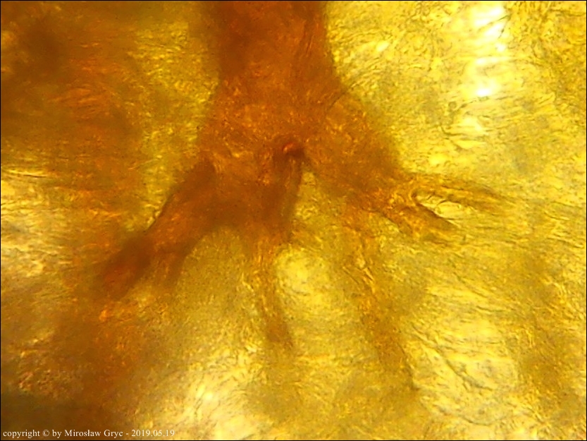 Substrat: Teren wilgotny. Owocniki na wgniecionym częściowo w błotniste podłoże fragmencie drewna (lisciastego?).