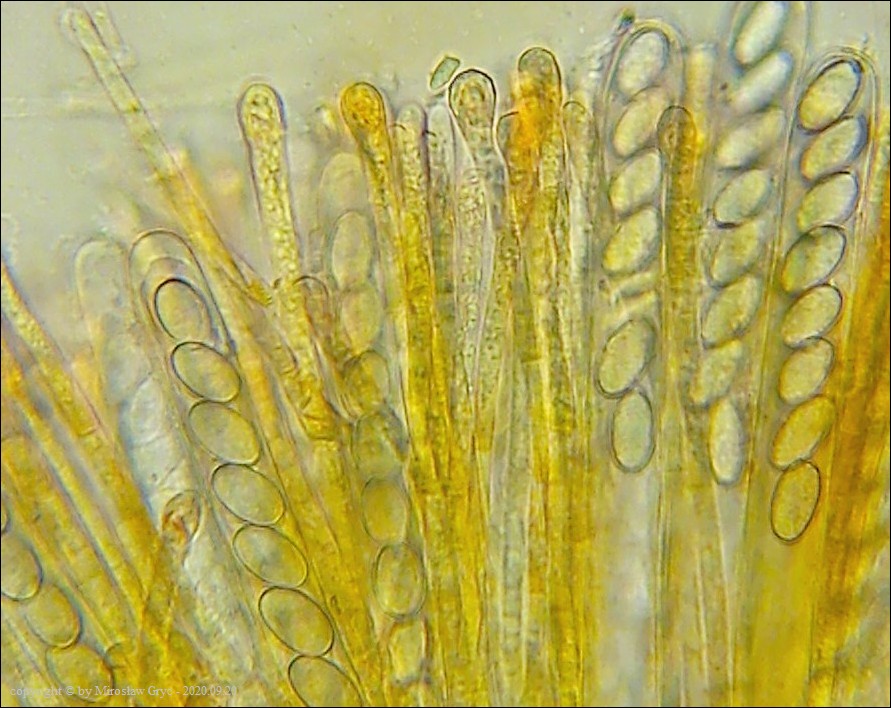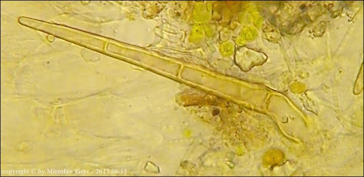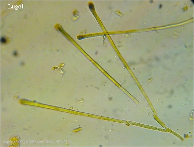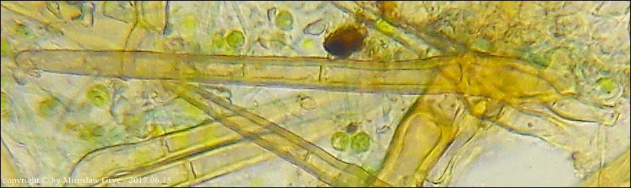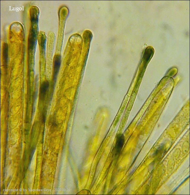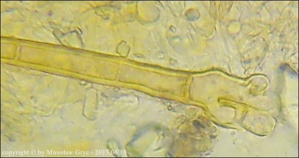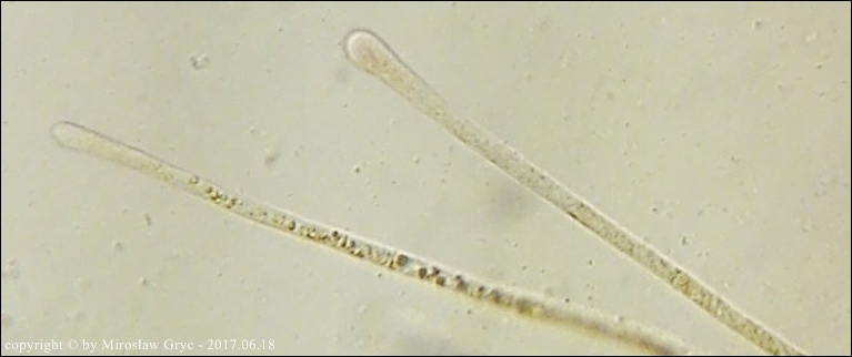 Oba te gatunki posiadają wiele cech wspólnych więc ich odróżnienie niekiedy jest dość trudne o ile nie posiada się owocników dojrzałych. Między innymi oba posiadają rozwidłone (gwiaździste) włosy a zawartość ich parafiz pod wpływem lugola zmienia barwę na ciemno(brudno) zieloną.