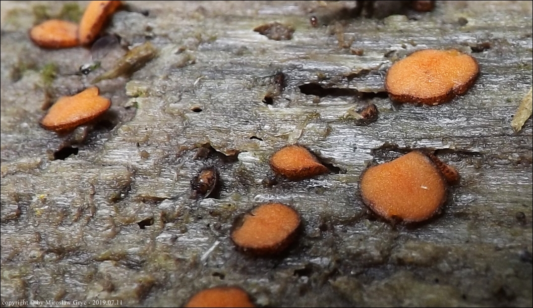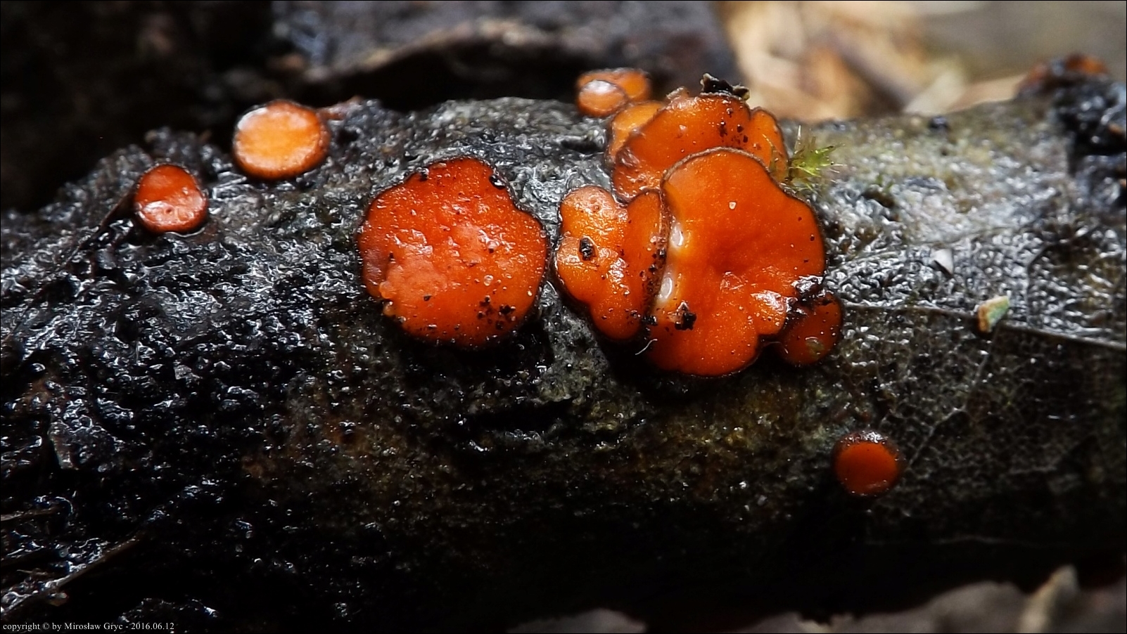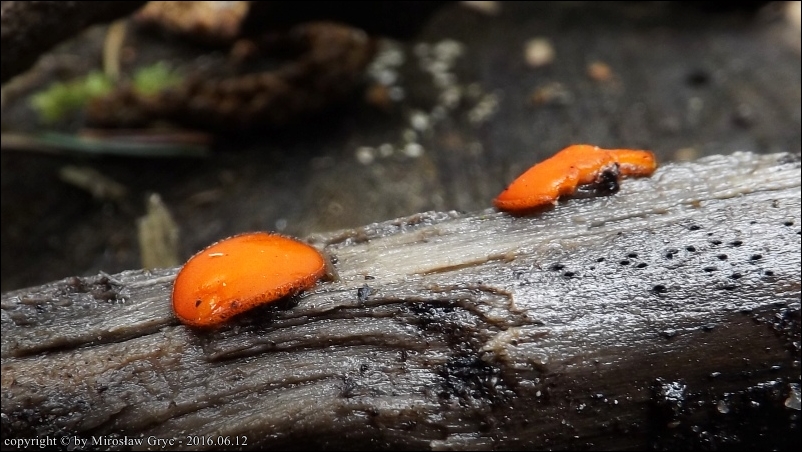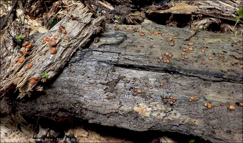 Substrat: Owocniki na leżącym w potoku, zbutwiałym pniu brzozy (Betula sp.) .