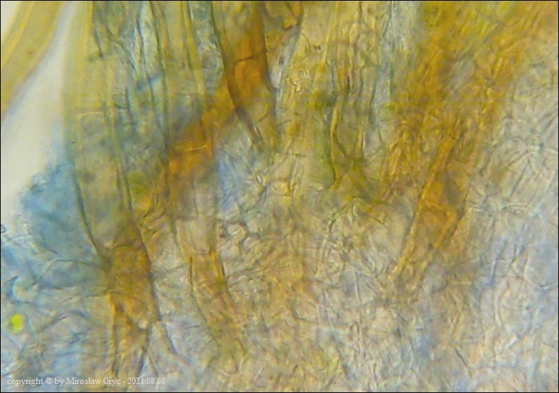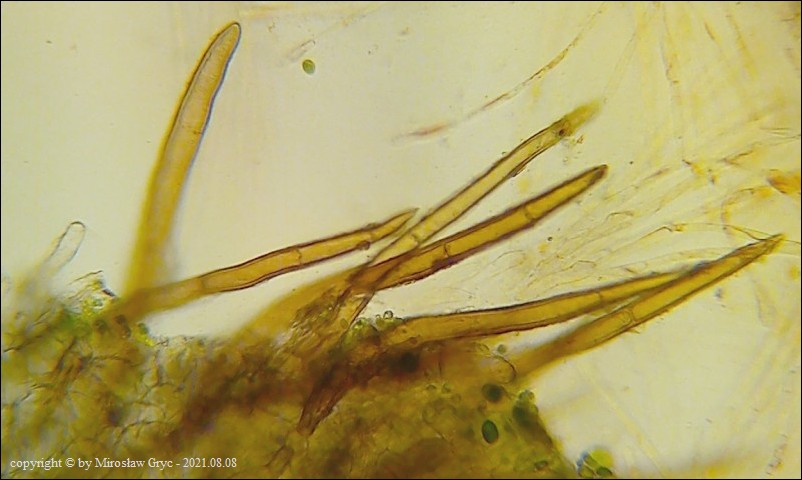 Dość jasno ubarwione (jasnobrązowe), o długości w skrajnych przypadkach dochodzących prawie do 300 µm. Wiekszość jednak włosów nie przekraczała 250 µm. Szerokość włosów do 20 µm i o cienkiej ściance do 3 µm.