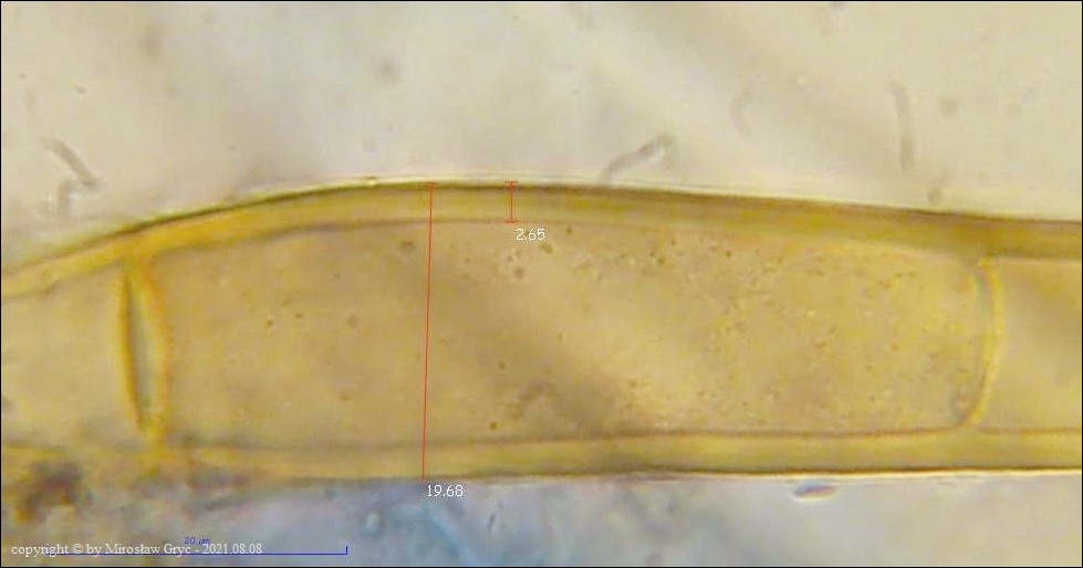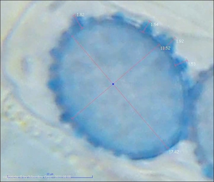 Zarodniki szerokoelipsoidalne o wymiarach: Me = 19.6 × 15.7 µm ; Qe = 1.3