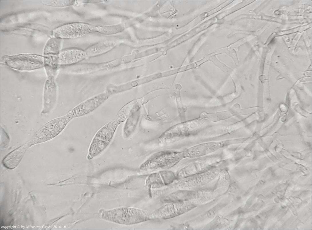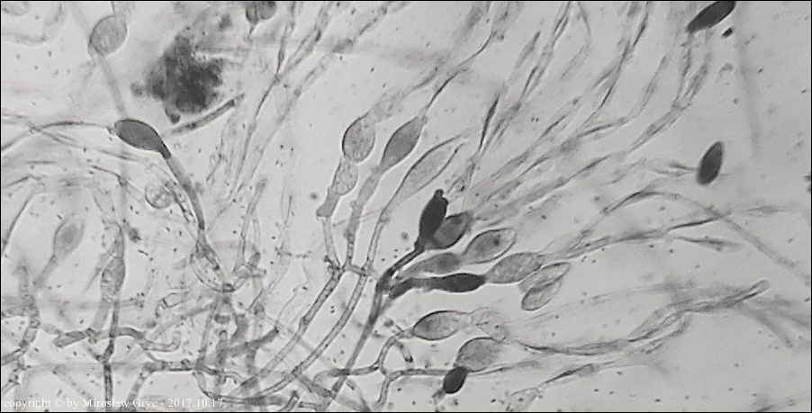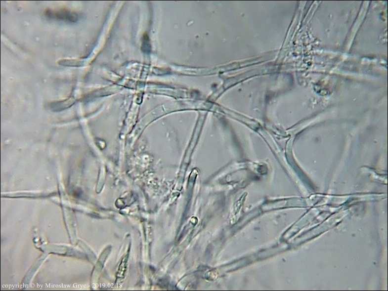 Trzecia prezentowana kolekcja pochodzi z substratu liściastego. Podobieństwo mikroskopowe jest bardzo duże. W zasadzie budowa identyczna. Okazy wymagają dalszych badań.