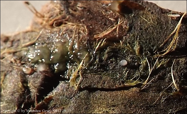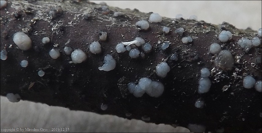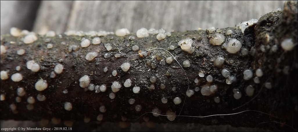 Umieściłem poniższe kolekcje w tym gatunku ponieważ jak do tej pory nic bardziej podobnego do tego gatunku nie opisano(?).Bardzo duże wątpliwości budzi w przypadku dwóch pierwszych kolekcji iglasty substrat: kilka kolekcji na cienkich, martwych gałązkach świerka oraz jedna na martwej gałązce jałowca.
