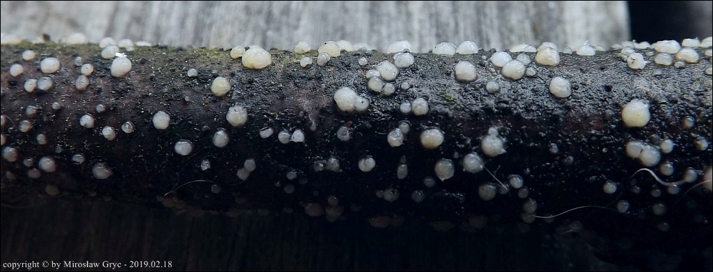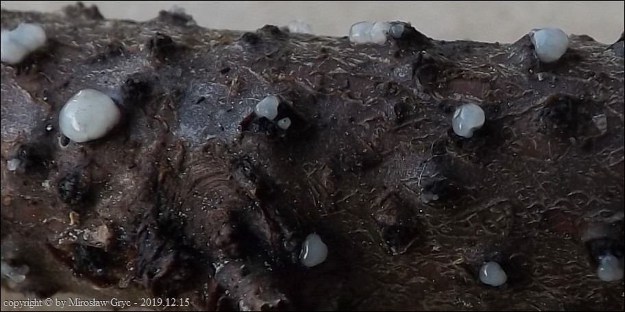 Substrat: Owocniki na leżacych na kupie gałęziach lipy (Tilia sp.).