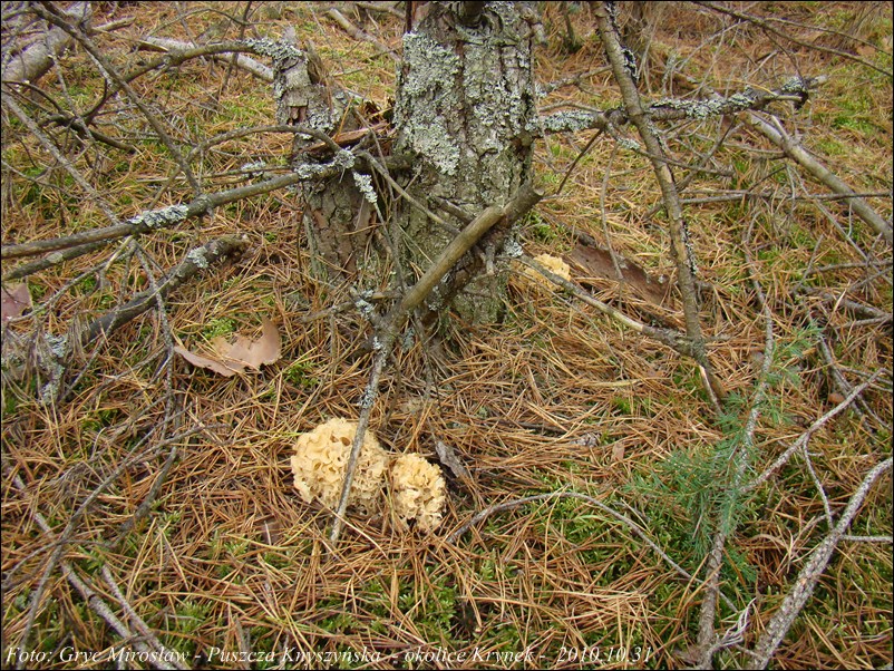 Lokalizacja: Puszcza Knyszyńska, okolice Czołnowa, owocniki pod wiekową sosną.