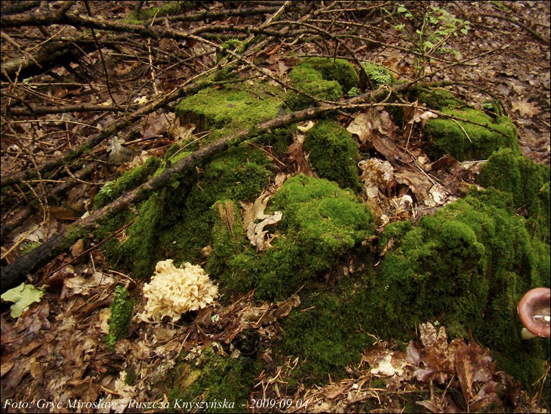 | ID: 144850 z dn. 2009.09.05 (ATPOL: GC-02) | Puszcza Knyszyńska, 6 km NE od Supraśla. | Około 20-letni las świerkowy posadzony na miejsce wyciętego starego lasu puszczańskiego, dość liczne pozostałe dębowe pnie. Jeden owocnik o średnicy około 10 cm na pniu. Publikacja: Kujawa A., Gierczyk B. 2011a. Rejestr gatunków grzybów chronionych i zagrożonych w Polsce. Część V. Wykaz gatunków przyjętych do rejestru w roku 2009. Przegląd Przyrodniczy 22(4): 16-68 Stanowisko ujęte w pracy zespołowej: Grzyby Puszczy Knyszyńskiej - Anna Kujawa, Błażej Gierczyk, Mirosław Gryc, Marek Wołkowycki - 2019 rok. |