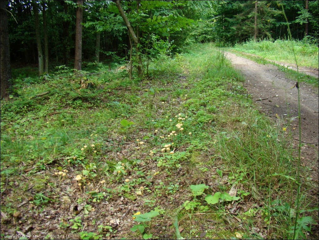 Substrat: Puszcza Knyszyńska w okolicy Czołnowa, las mieszany, owocniki wyrastaja najbardziej masowo na poboczu drogi oraz w miejscu składowania drewna.