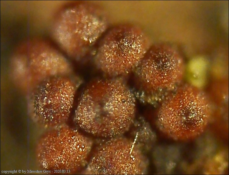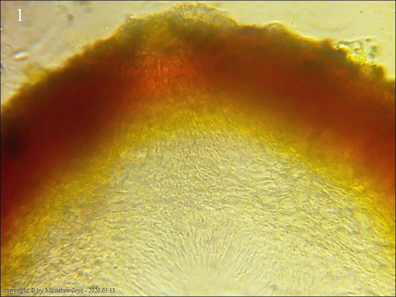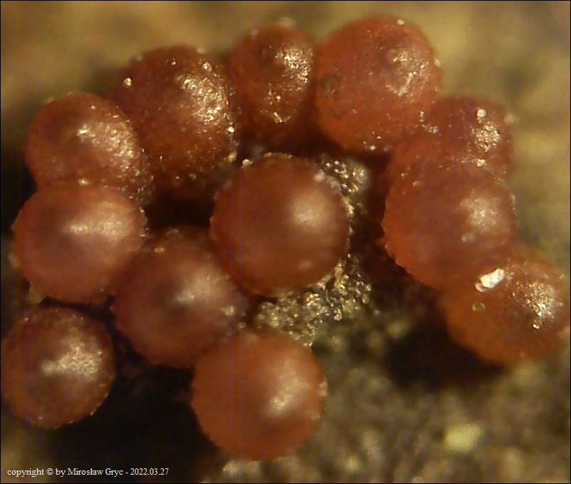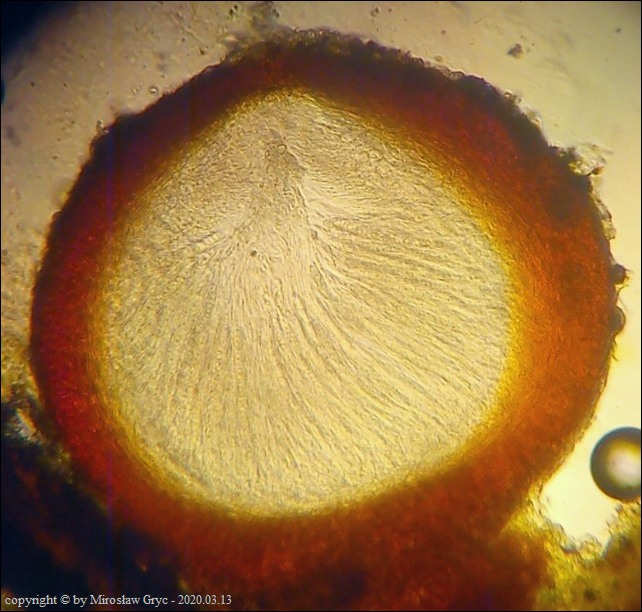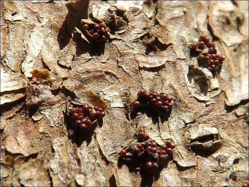 Substrat: Owocniki na pniu, świeżo wywróconego świerka (Picea abies) .