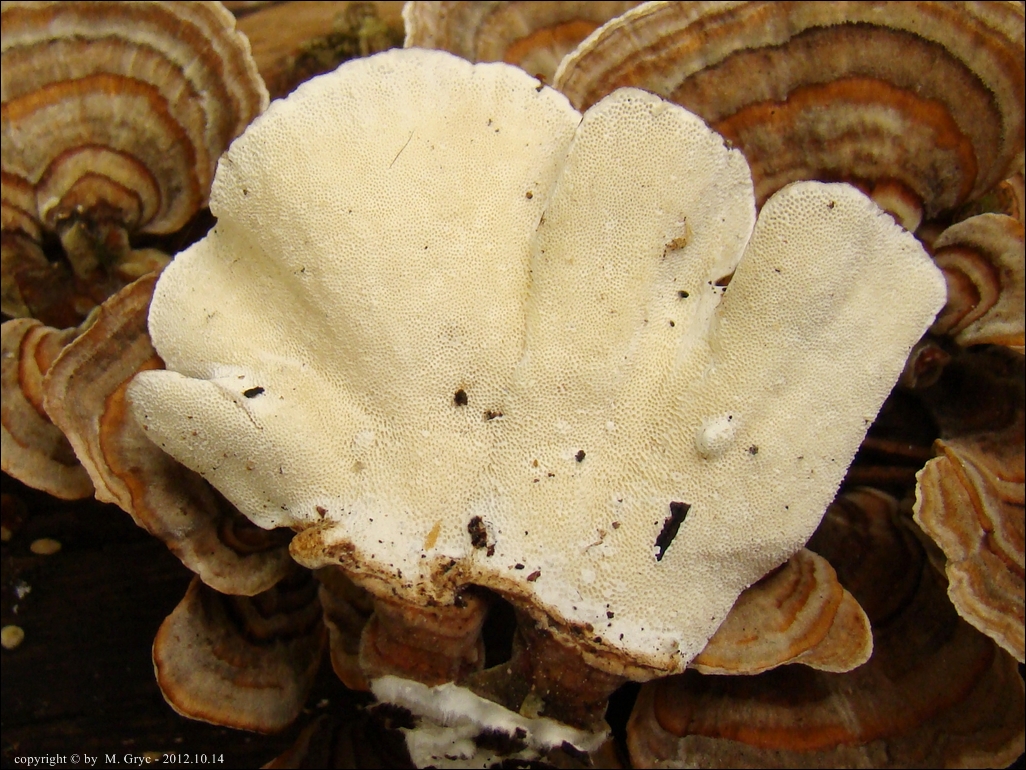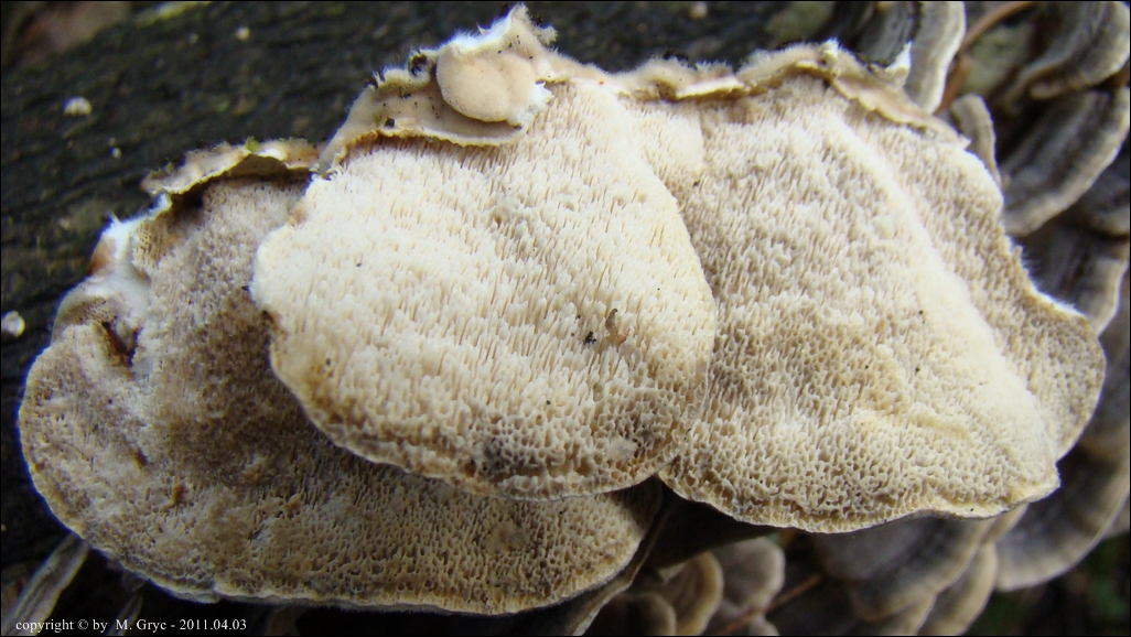 Bardzo podobny wrośniak strefowany (Trametes ochracea).Różnice makroskopowe są dość ulotne i nie we wszystkich przypadkach dość czytelne jednak ogólnie rzecz ujmując:
