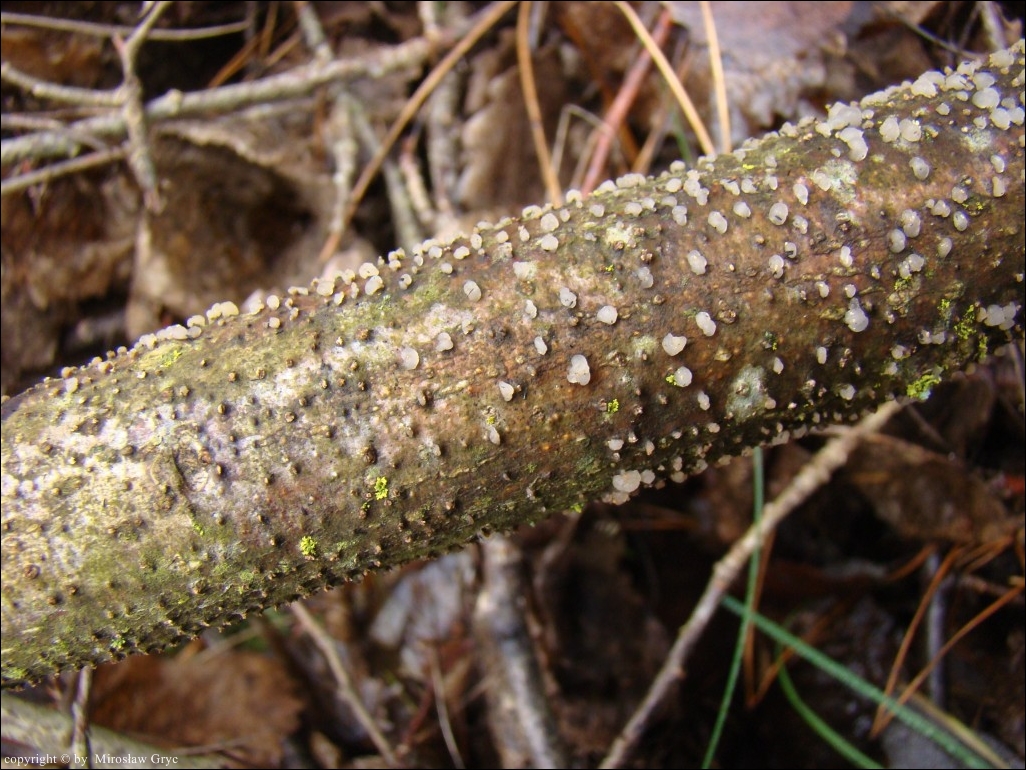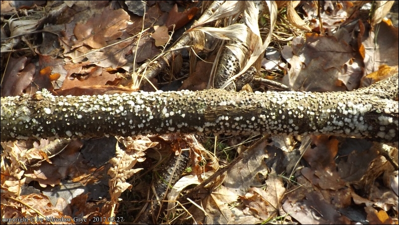 Substrat: Owocniki masowo na leżących na ziemi gałęziach dębu.